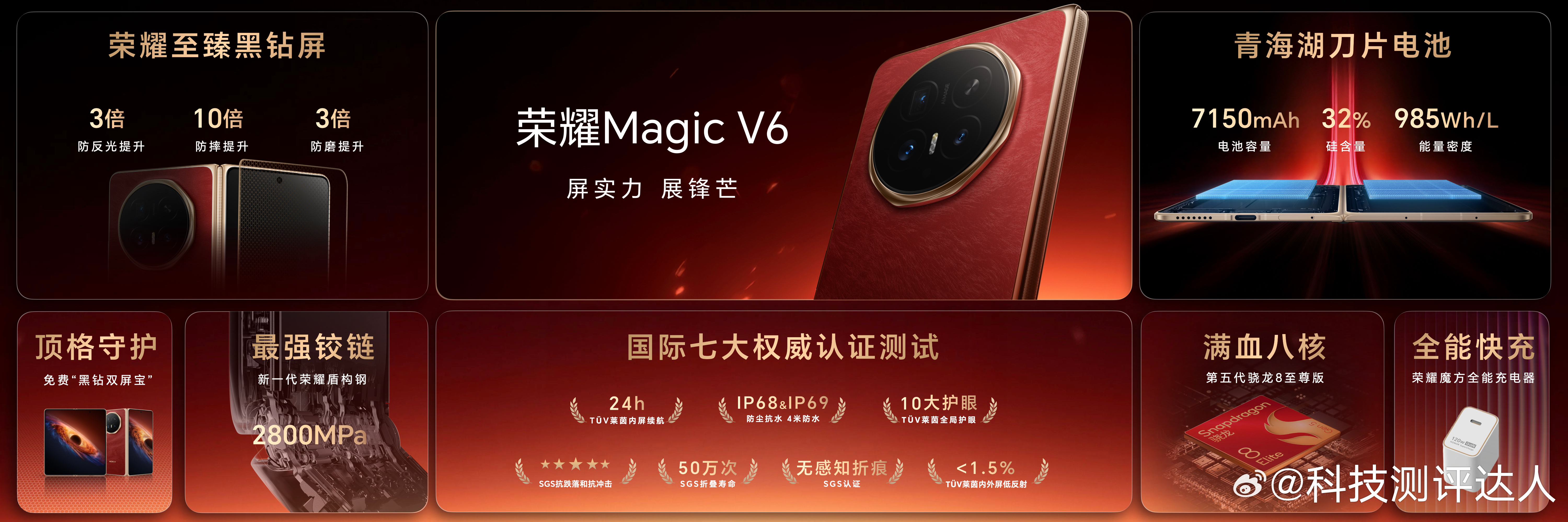 荣耀Magic V6 这次在续航和硬件上真的下足猛料,7150mAh青海湖刀片电池,硅含量远超行业两倍,技术直接领先两代。再加上满血骁龙8至尊版,大屏用一整天都没问题,还拿了24小时续航认证。搭配120W迷你快充头,充电快又方便。屏幕护眼耐用、配置拉满,从续航到性能再到屏幕全都拉满,妥妥的全能折叠屏旗舰。荣耀MagicV6电池领先行业两代 。