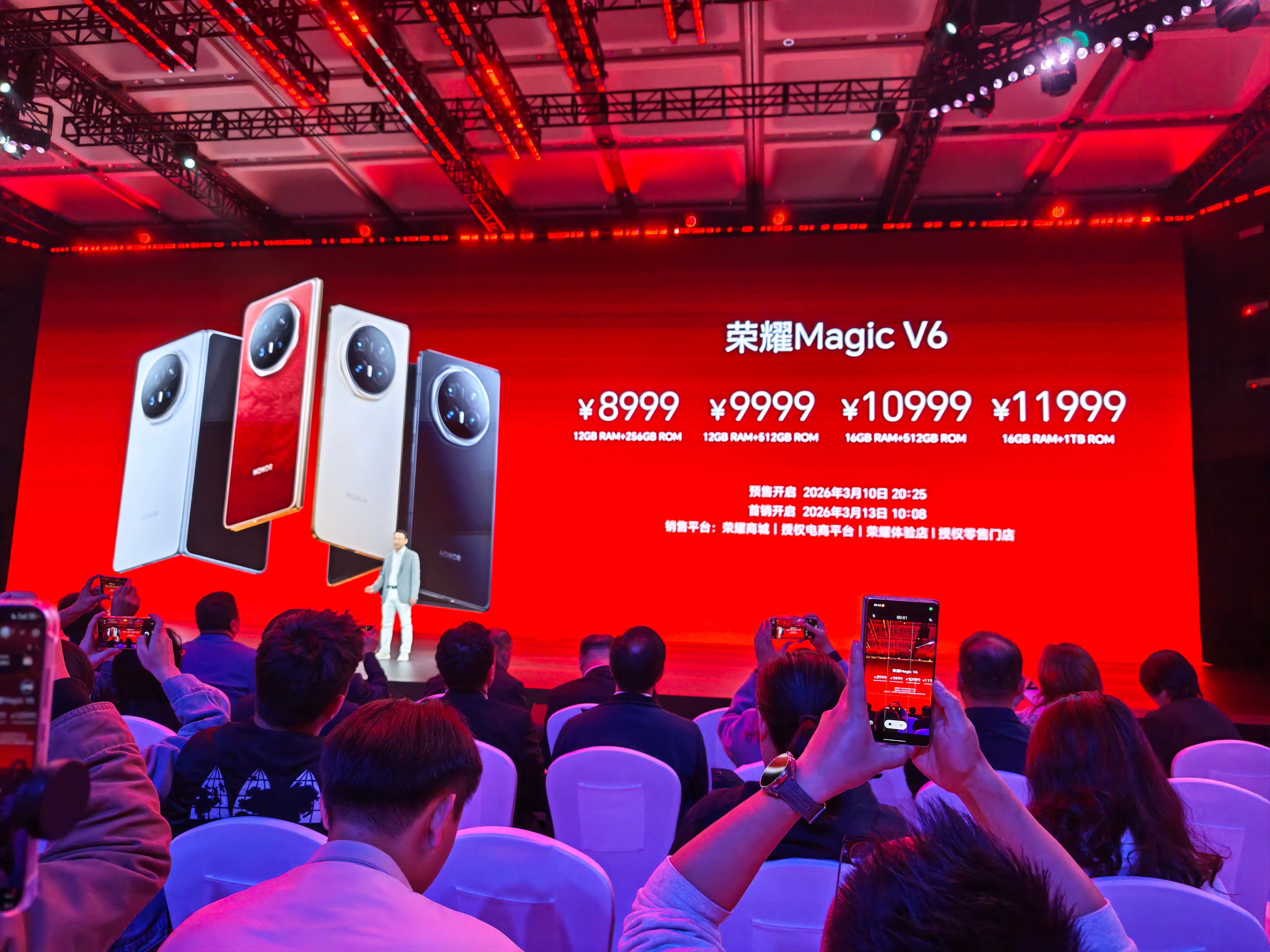 当大家都以为内存涨价,荣耀也会顶不住压力顺势涨价的时候,荣耀还是扛住了,荣耀Magic V6 8999起售,顶配11999,刺激吧!? 深圳·前海国际会议中心