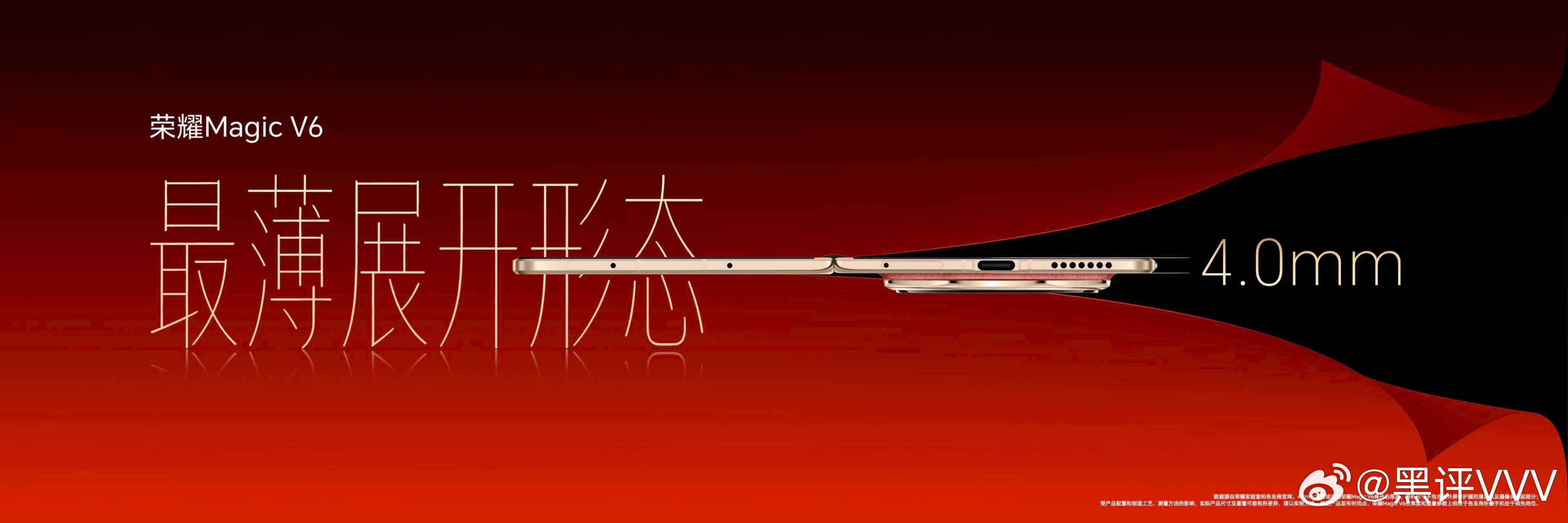 荣耀Magic V6 折叠形态下薄至8.75毫米,轻至219g,展开状态下的厚度只有4.0毫米,荣耀MagicV6最轻薄折叠屏 实至名归。外观设计上在荣耀Magic V系列高颜值的基础上全新设计,在配色、边框、镜头模组设计上满满匠心,将顶奢材质与高端质感完美融合,获2026年iF设计奖。主打的赤兔红配色更兼美好寓意,屏实力马上红。