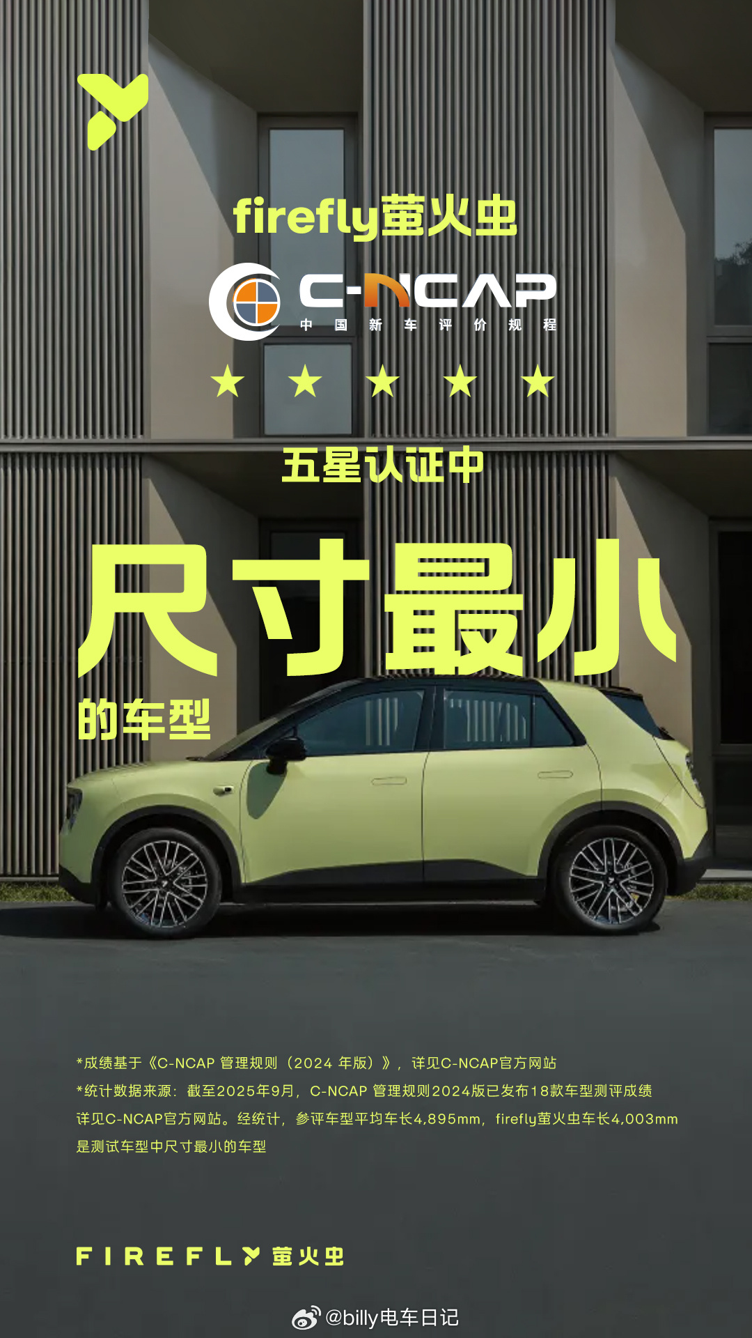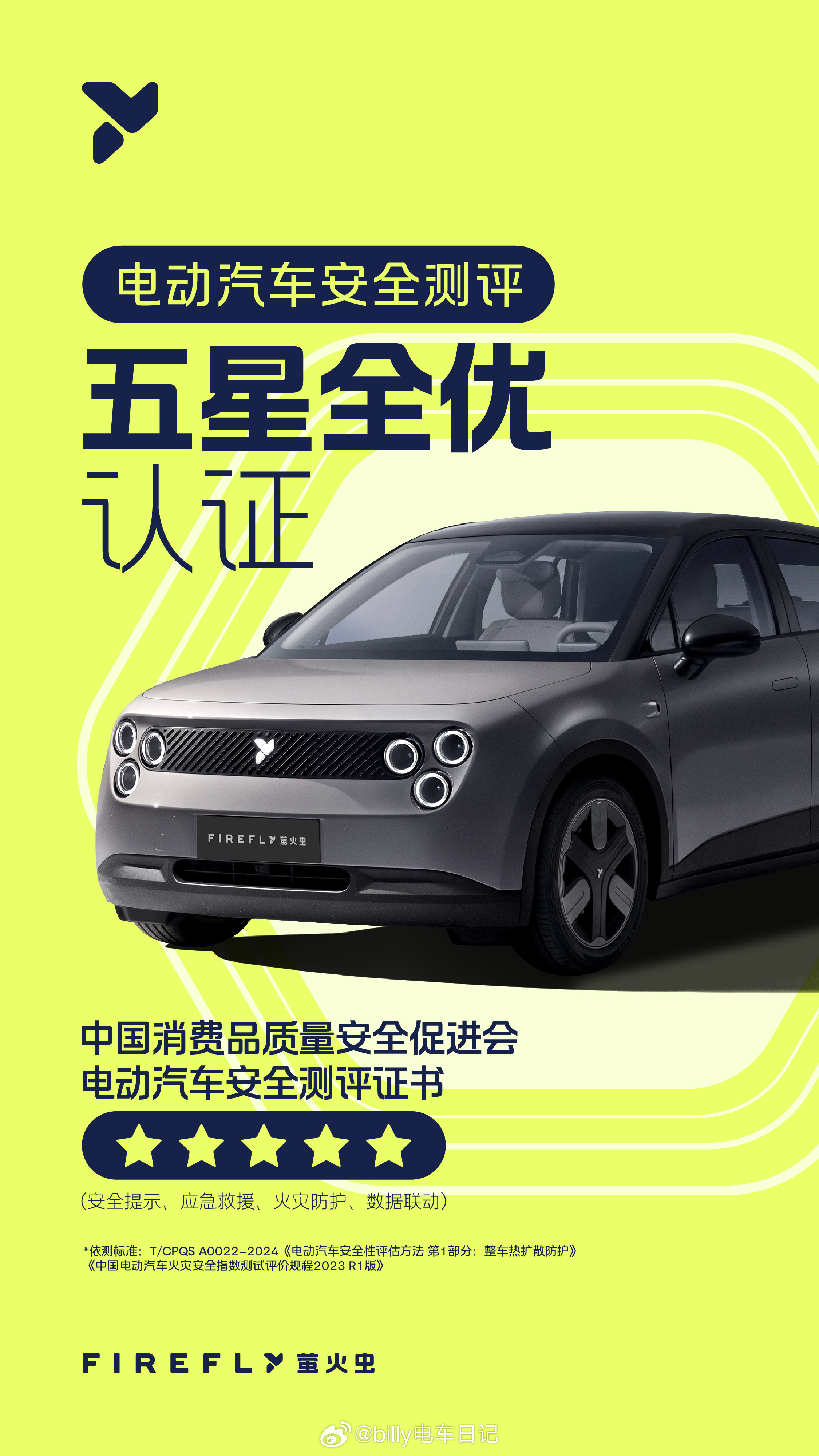 firefly萤火虫是已经拿到了中欧双五星、中保研全优,再加上最近刚拿到的电动汽车安全评测五星全优认证。关键是它还是中保研历史上尺寸最小但成绩全优的车型,这个含金量其实不低。