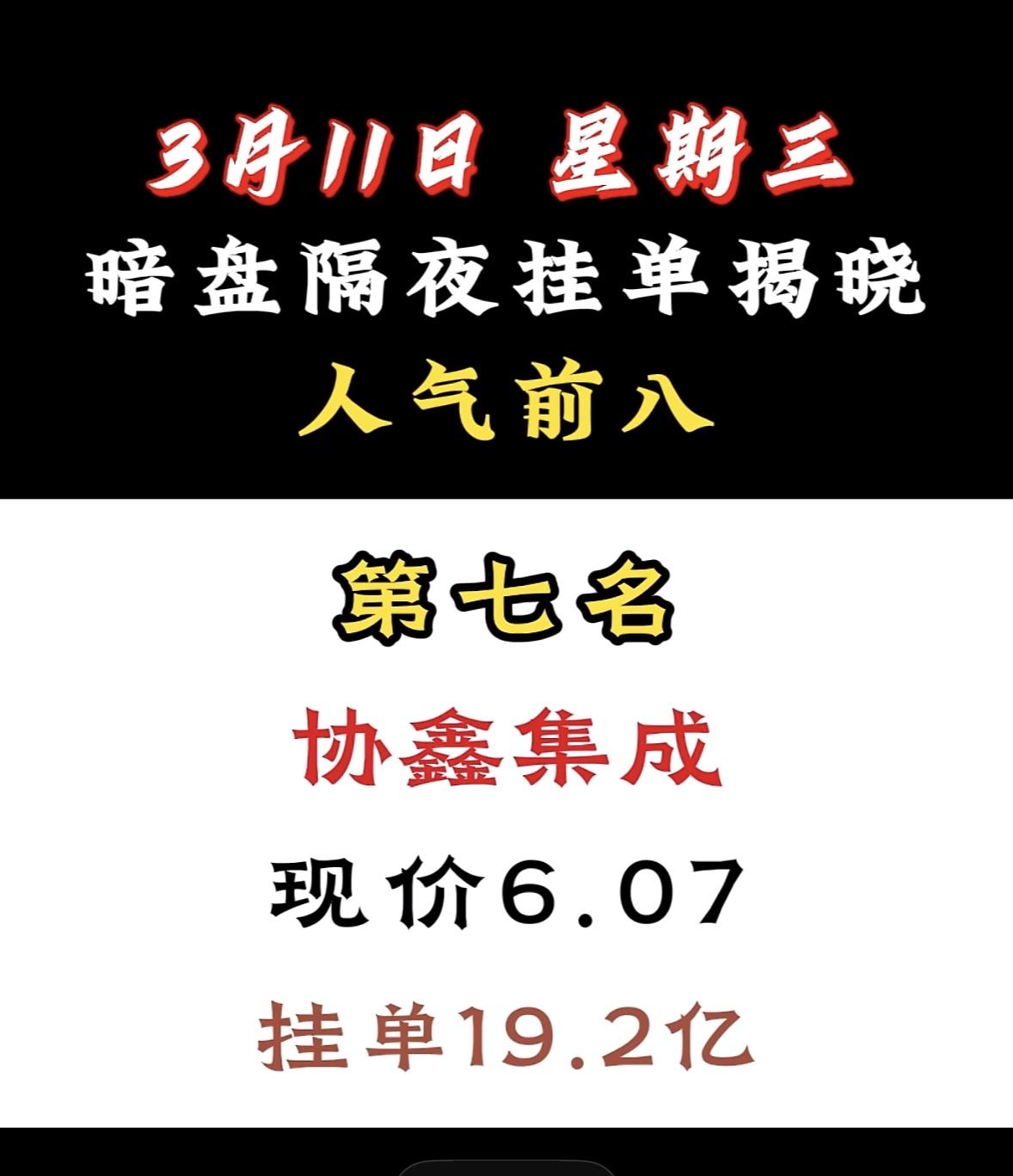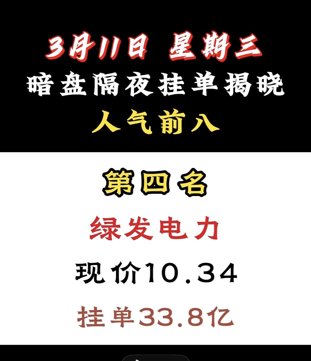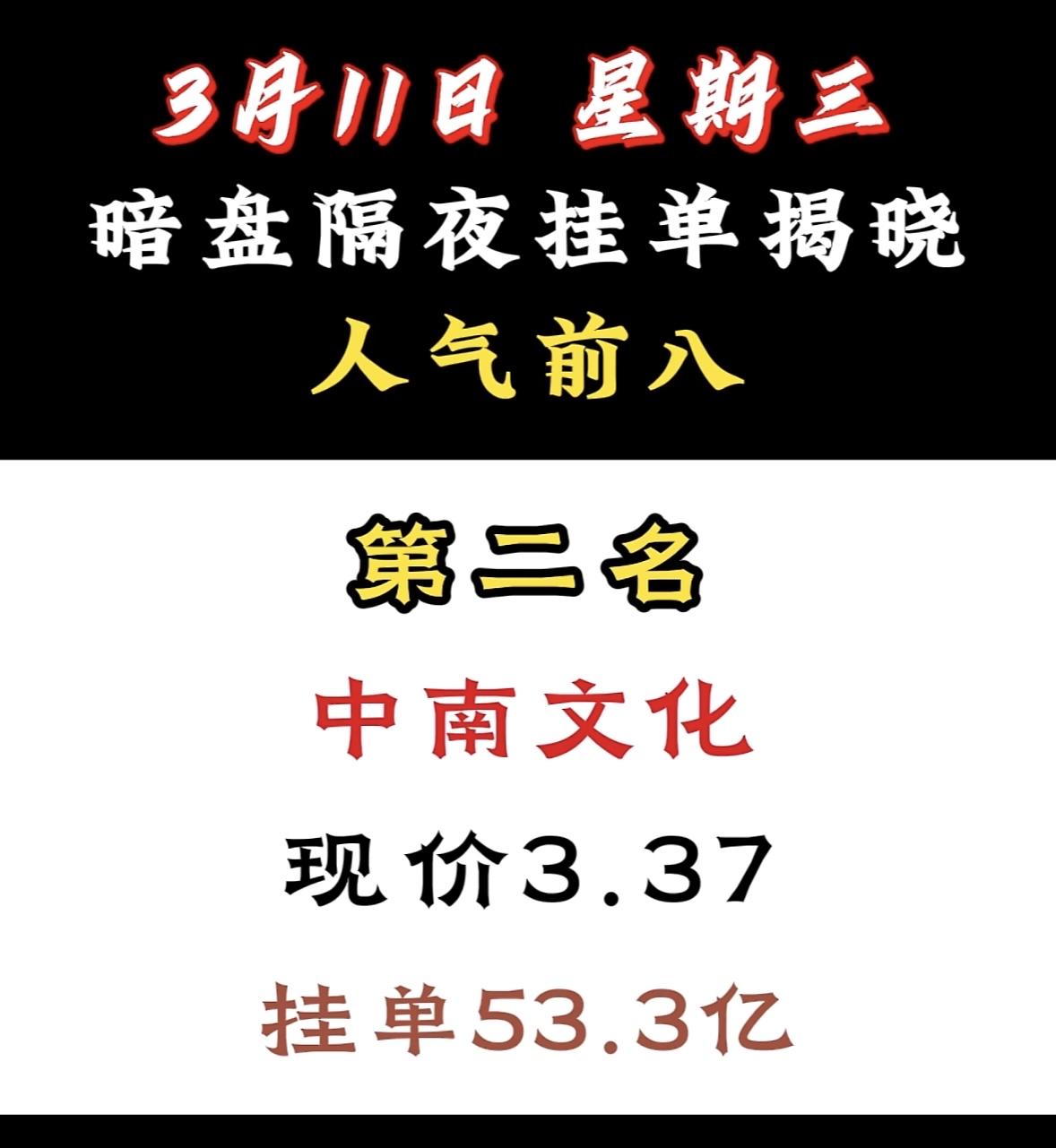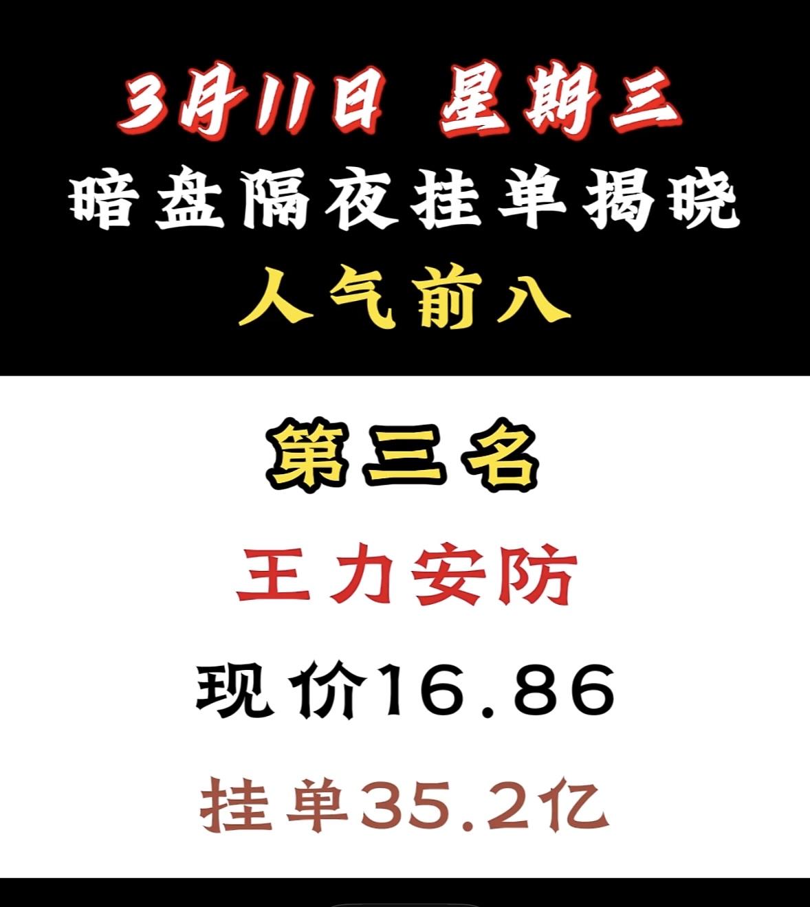 3月11日暗盘隔夜挂单前8名个股揭晓 宁波建工暗盘挂单人气夺冠,资金青睐显强势,市场关注度飙升。