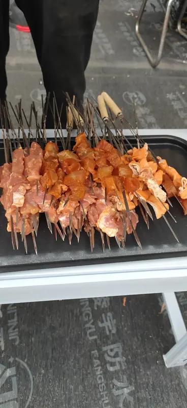 现在夜市里超火的1米大肉串,看着特别唬人,一根能卖20元,好多人觉得挺实惠,人手一根打卡。可记者一调查,好家伙,这肉串批发价才4.5元,差价近5倍。 原来这肉串原料根本不是牛羊肉,是纯鸭肉加羊油。鸭肉便宜,每斤6 - 7元,商家用羊尾油穿插烤制,再用羊肉精粉腌制,撒上大量孜然辣椒面,完全掩盖了鸭肉味。纯牛羊肉串批发价要12元一根,成本高难定价,摊主不爱进,4.5元的鸭肉串利润近80%,成了摊位“硬通货”。这妥妥的“挂羊头卖鸭肉”,大家以后可得擦亮眼睛!