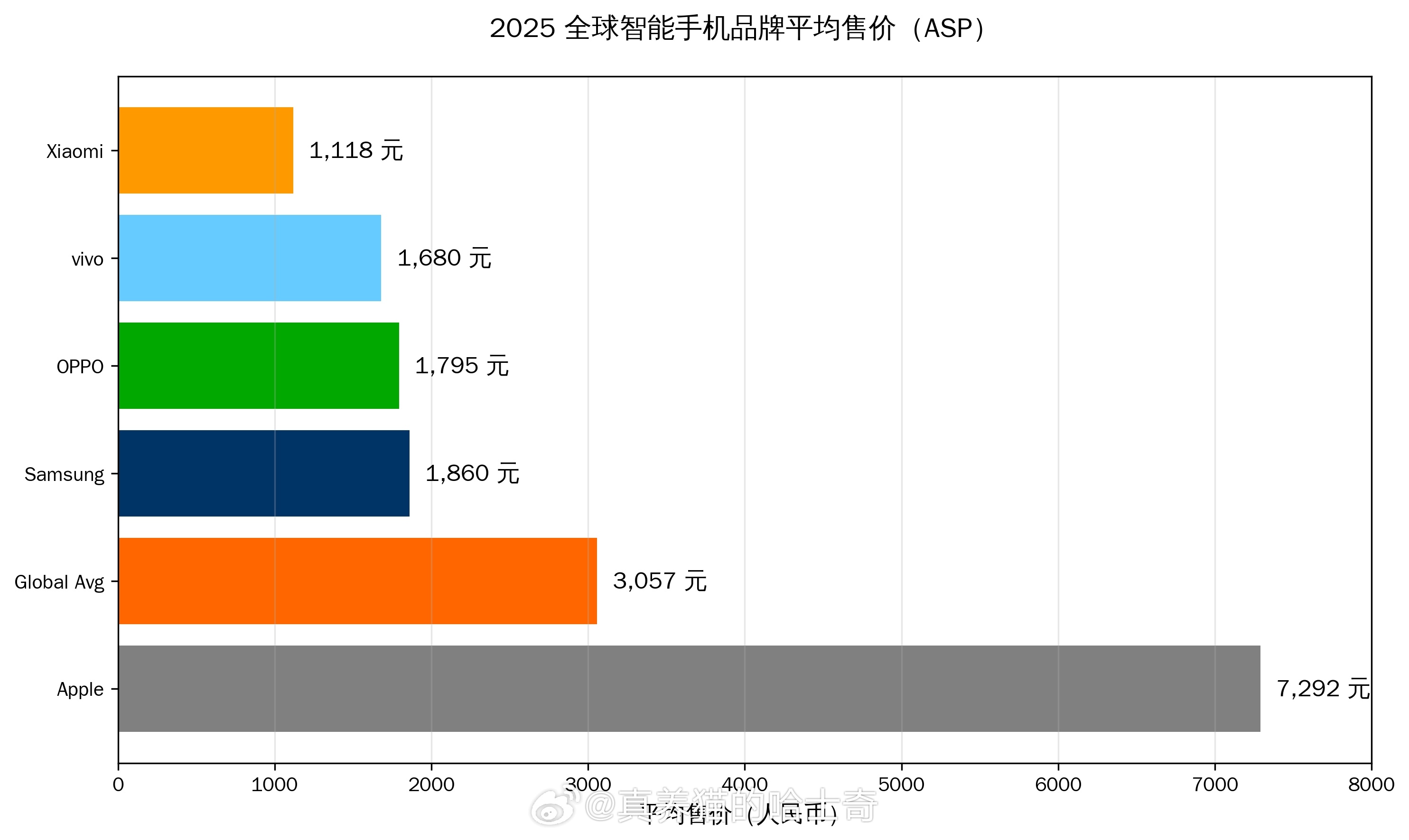 2025年各手机品牌平均售价(ASP):