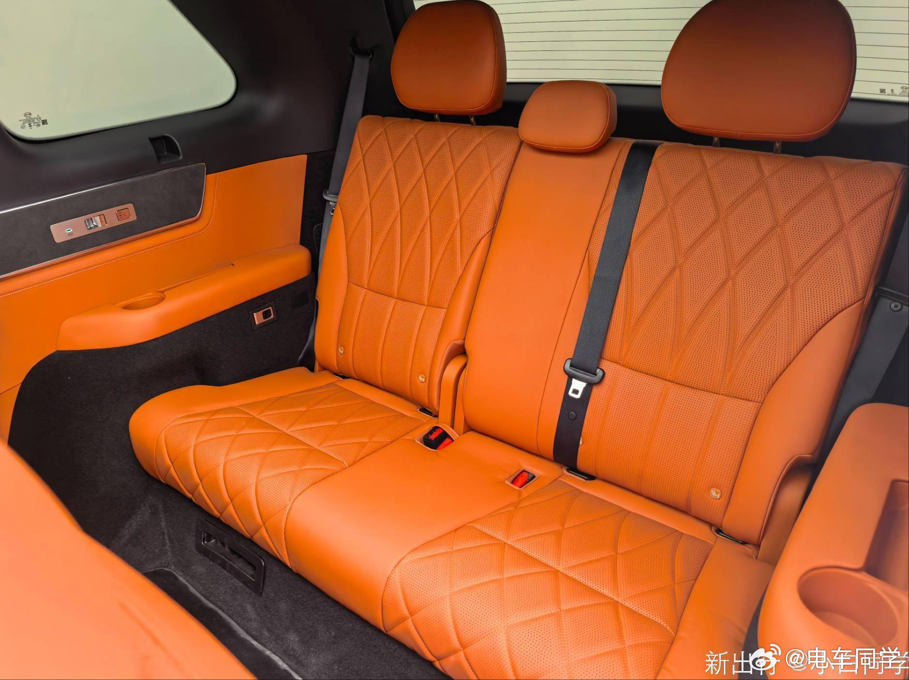 2+2+3的座椅布局,第二排的独立座椅,一个细节是扶手上是实体按键,这个布局非常喜欢,如果是屏幕感觉年纪大一点的人都不敢乱划、也玩不转。