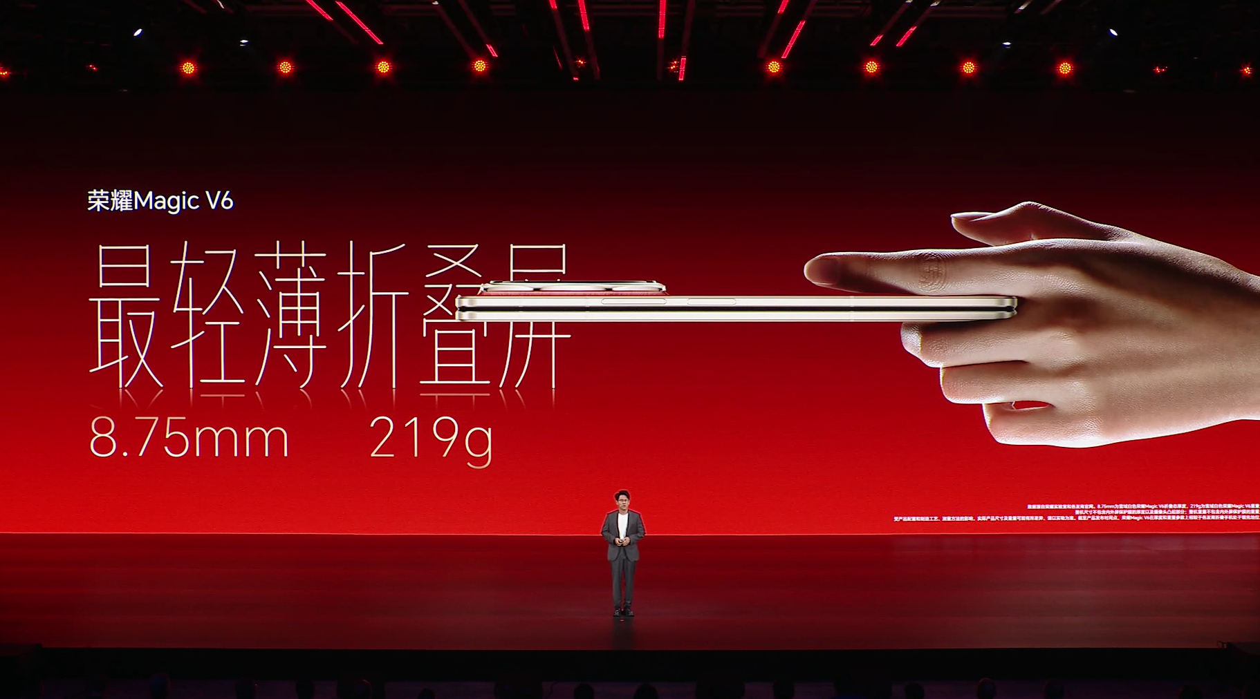 荣耀Magic V6 真的把折叠屏轻薄和续航玩明白了,机身薄到只有8.75mm,轻至219g,展开更是薄到4mm。关键在这么极致的轻薄机身里,塞下7150mAh超大电池,这都多亏了荣耀青海湖刀片电池,又薄又能打,大屏展开用也能连续使用24小时。