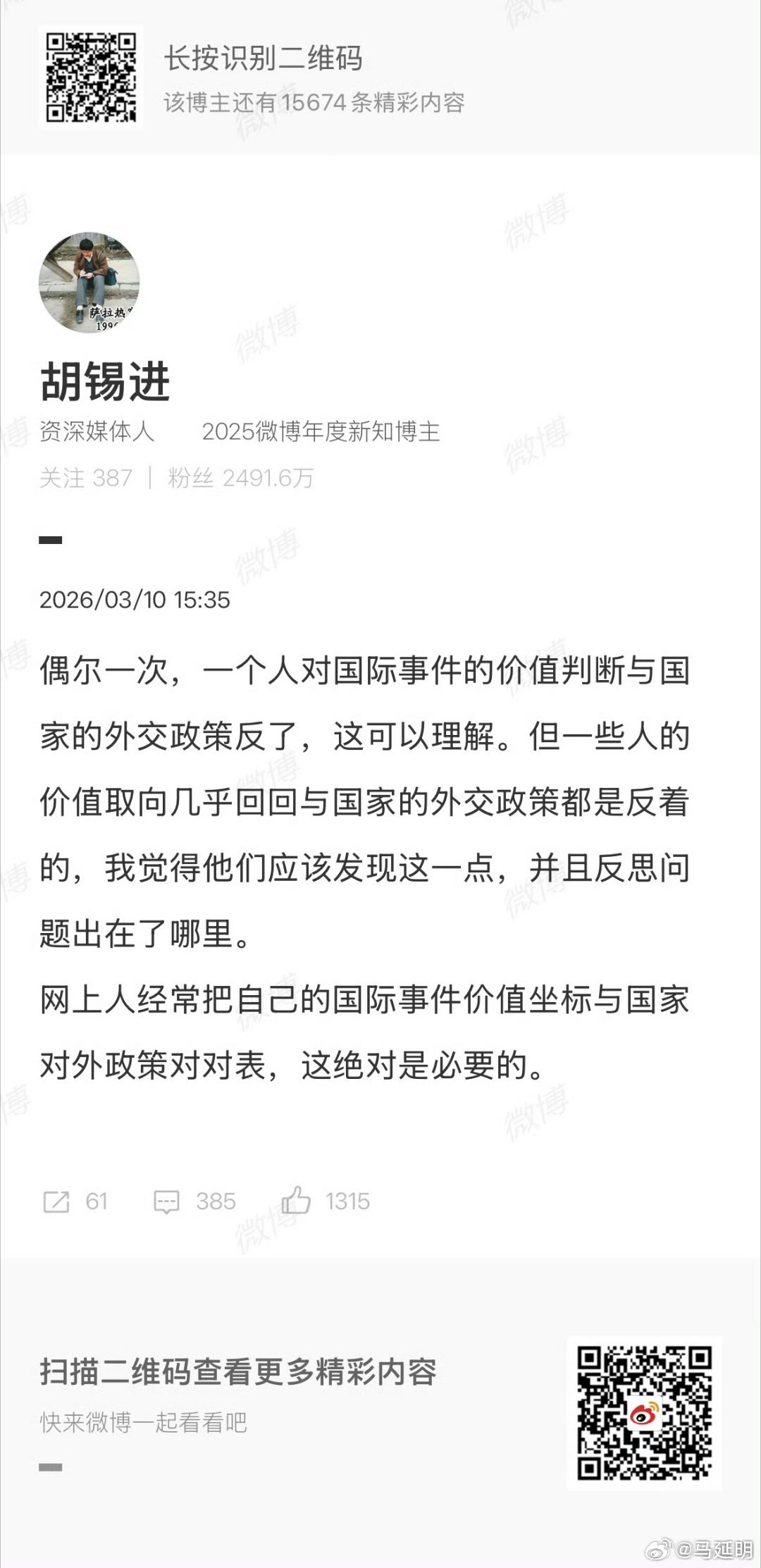 胡锡进老师说的对。不仅要对表,还要要对标。
