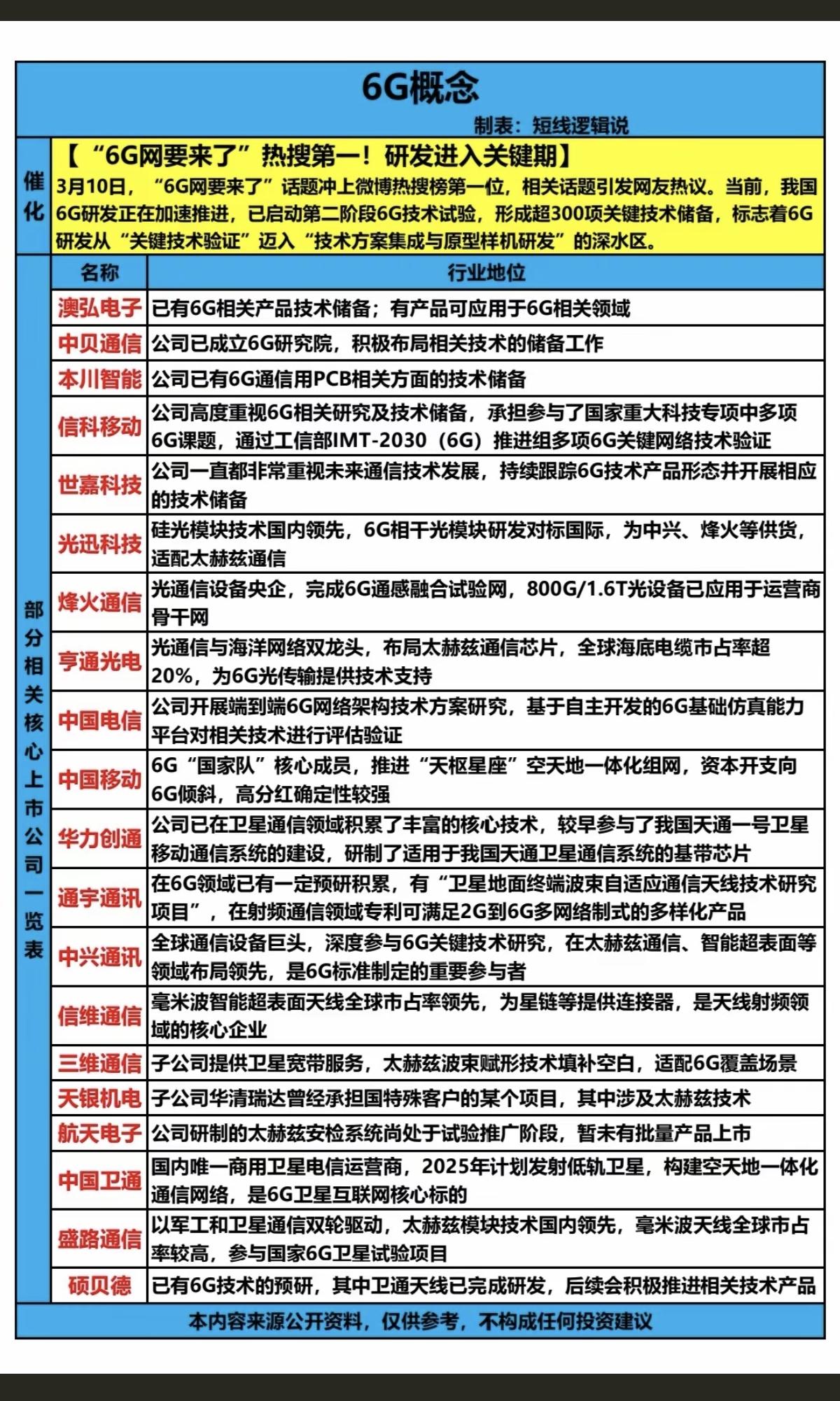 6G网络概念来了! 6G网络要来了,热搜榜第一!研发进入关键期! 3月10四,6G网络要来了,充上了微博热搜榜第一位!6G研发正在加速推进! 相关核心龙头股;