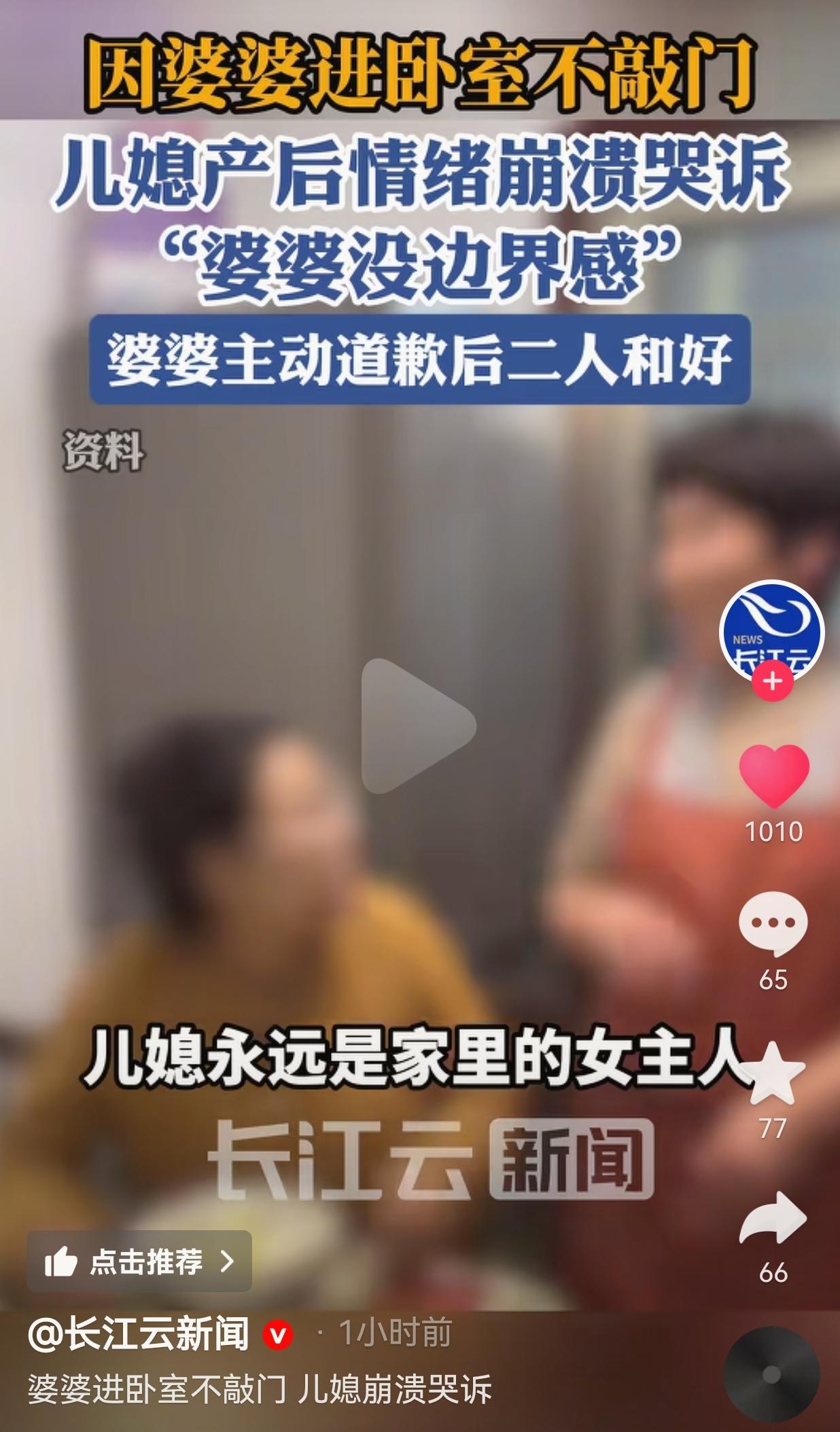 这才是处理婆媳关系的正确方式!婆婆凌晨6点闯卧室打扫卫生,可是婆婆从来不敲门,产后儿媳崩溃大哭。网友:原来最伤人的,是“我都是为你好”。 河南洛阳,一婆婆今年60岁,是个热心肠的老人,平日里其实一直很护着自己的儿媳,自从儿媳生了小孙女,更是主动搬过来帮忙照顾。 她每天天不亮就起床,想着帮小两口打扫卫生、照看孩子,怕他们年轻人累着。 可这份“好心”,却成了压垮儿媳的最后一根稻草——早上6点,婆婆连门都不敲,直接推开卧室门就往里走,有时候还在床边来回溜达,完全不管儿媳是不是在喂奶、是不是还在补觉。 刚生完孩子的女人,身体虚、情绪也敏感,本来就容易焦虑崩溃。 每次婆婆毫无预兆地闯进来,儿媳都觉得婆婆没有边界感,但是,她不好意思跟婆婆讲。 有一天,她实在忍受不了了,她试着跟老公说,可老公总觉得“我妈就是勤快,没恶意”。她想跟婆婆提,又怕老人觉得自己不知好歹,最后只能躲在被子里偷偷哭,连崩溃都要小心翼翼。 其实我特别能理解这位儿媳的感受。很多长辈都觉得“进自己儿子家,哪用得着敲门,更何况我是来帮忙的,你怎么还挑三拣四”, 可他们忘了,儿媳早就不是那个需要被管着的小姑娘了,她是这个家的女主人,是需要被尊重的成年人。 那些打着“为你好”旗号的越界,才是最伤人的。婆婆以为自己是在付出,可对儿媳来说,这不是照顾,是打扰,这不是关心,是冒犯。 好在最后事情有了转机。经过家人和第三方的调解,儿媳的老公终于站出来跟婆婆好好沟通,婆婆也意识到自己忽略了儿媳的感受,主动跟儿媳道歉,说自己只是太心疼小孙女,把更多注意力都放在了孩子身上,没考虑到儿媳月子里需要休息。 她还拉着儿媳的手说:“以后这个家,你永远是女主人,我再也不会随便闯你们房间了。” 儿媳也坦言,其实婆婆平日里一直很护着自己,知道老人没有恶意,只是这次的边界感问题实在让自己喘不过气,如今婆婆愿意道歉,她也彻底放下了心结。最终婆媳俩顺利和好,这个家又恢复了往日的温暖。 看到这里真的有点鼻酸。其实婆媳之间哪有什么深仇大恨,不过是一个没说出口的委屈,一个没意识到的越界。很多时候,我们缺的不是爱,是边界感。不是付出,是尊重。 真正的亲情,从来不是“我想怎样就怎样”,而是“我知道你需要什么,我愿意为你退后一步”。就像这位婆婆,她的初心是好的,可方式错了。儿媳的崩溃不是矫情,是在捍卫自己作为一个妻子、一个妈妈的底线。 对此,你怎么看?欢迎大家评论区讨论留言。