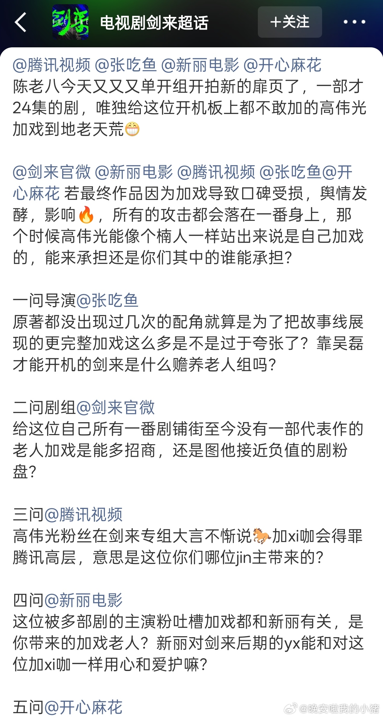 吴磊粉丝五问剑来剧组,高伟光加戏了,怎么粉丝还让男主家掂量