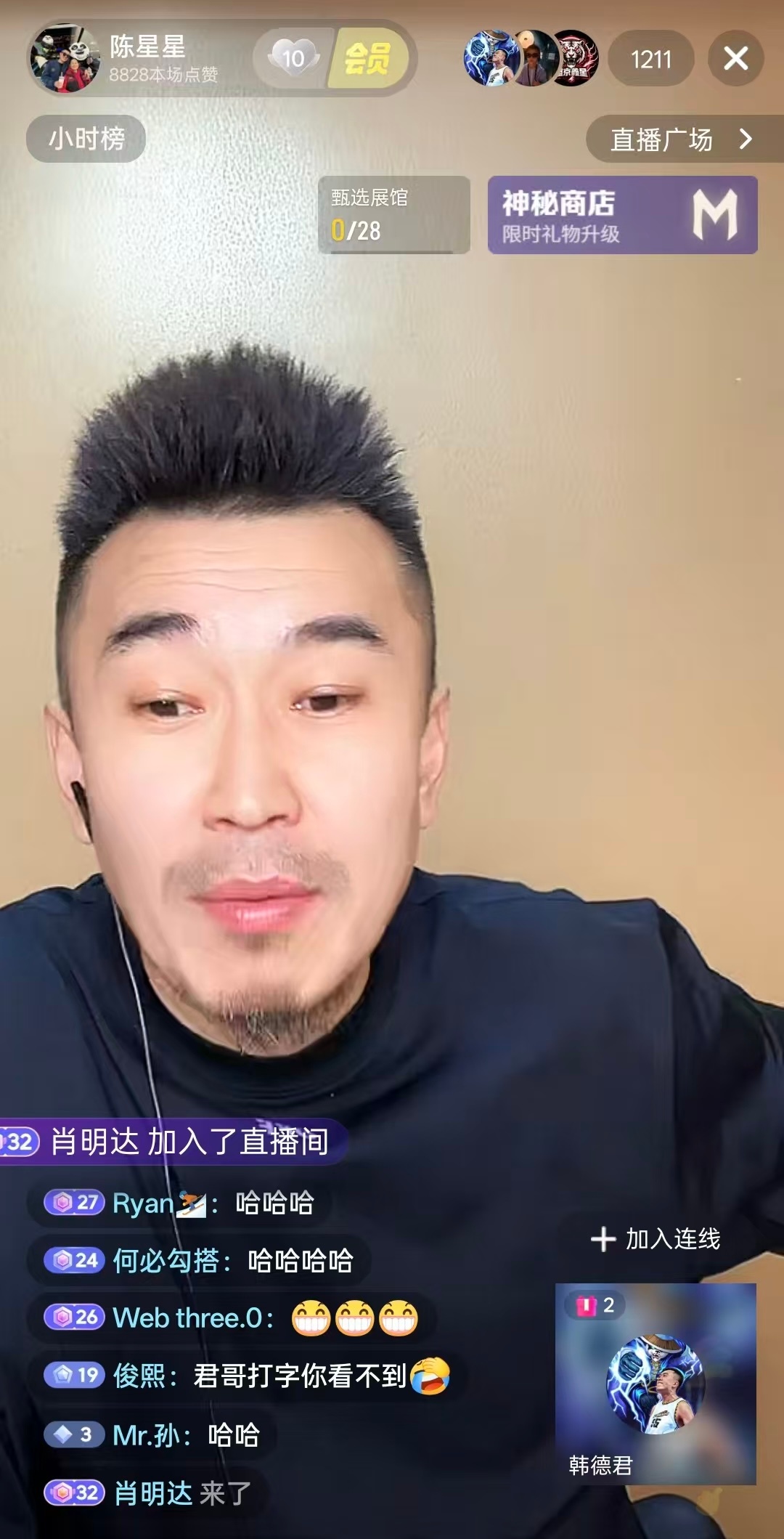 韩德君问陈星:你以前踢球啥位置?陈星:影子前锋韩德君:就是场上找不到人,消失了。