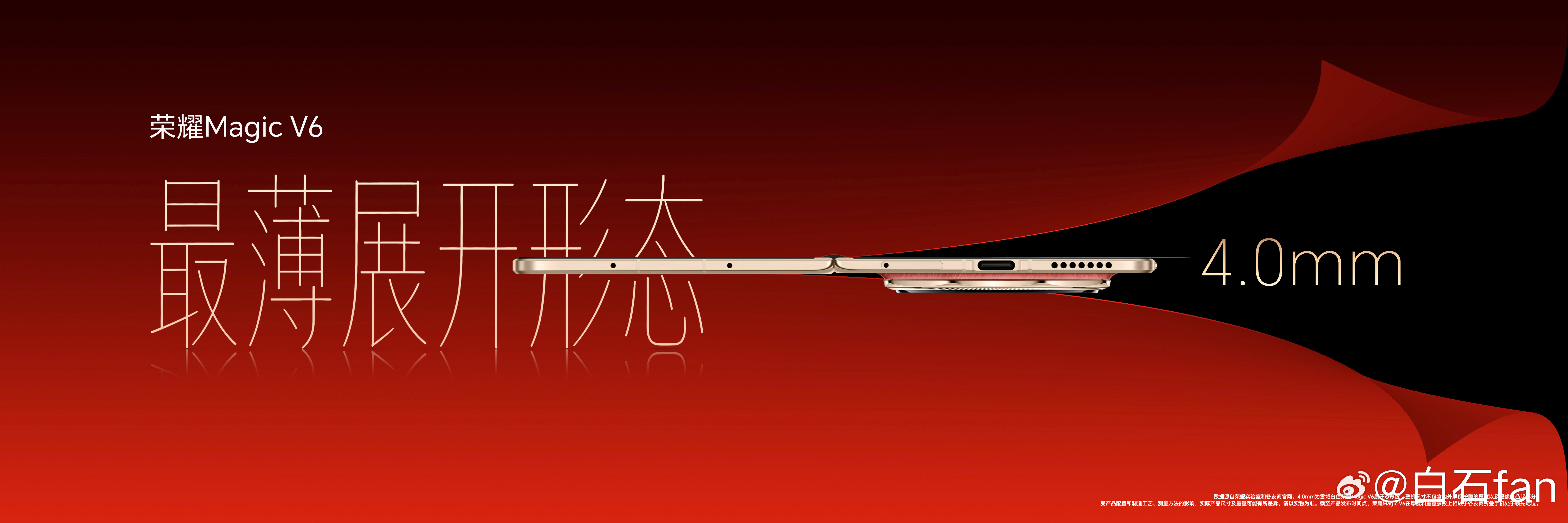 又薄又强?!荣耀Magic V6 折叠形态下薄至8.75毫米,轻至219g,展开状态下的厚度只有4.0毫米,荣耀MagicV6最轻薄折叠屏 实至名归。