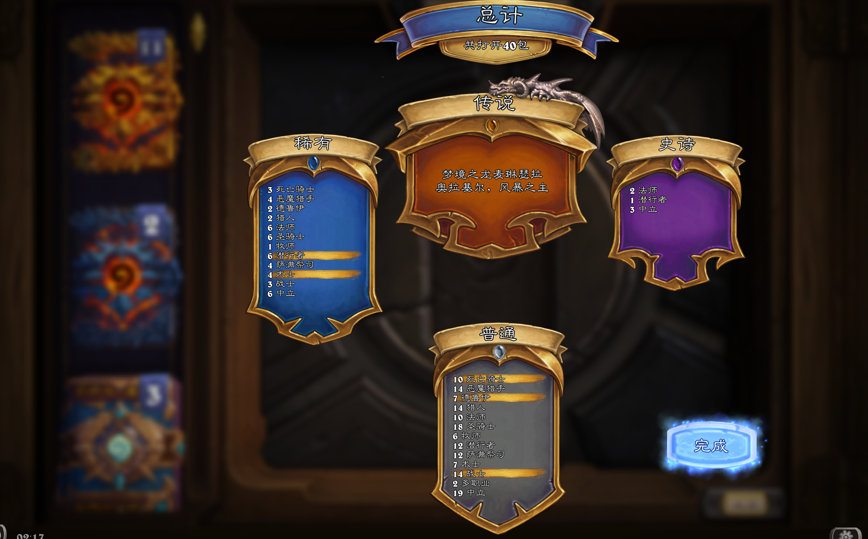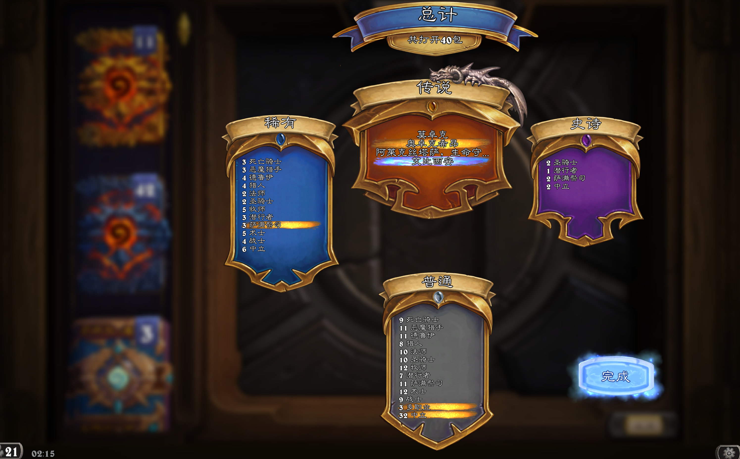 炉石传说 起床开包了!两预购142普包开了11橙,11金包开了2橙。看看大家开得如何?