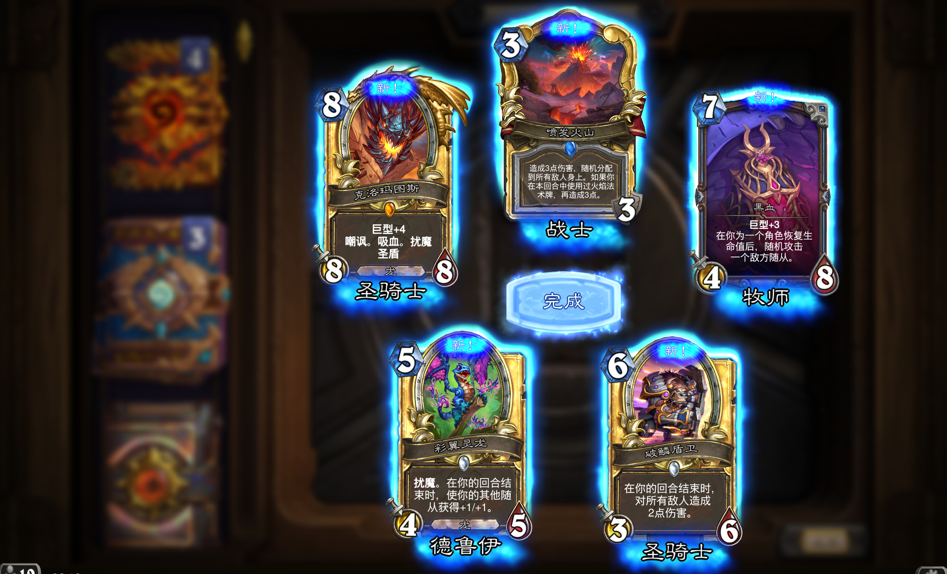 炉石传说 德鲁伊史诗法术,1费,奥术随机将5张法力值消耗大于或等于(8)点的随从