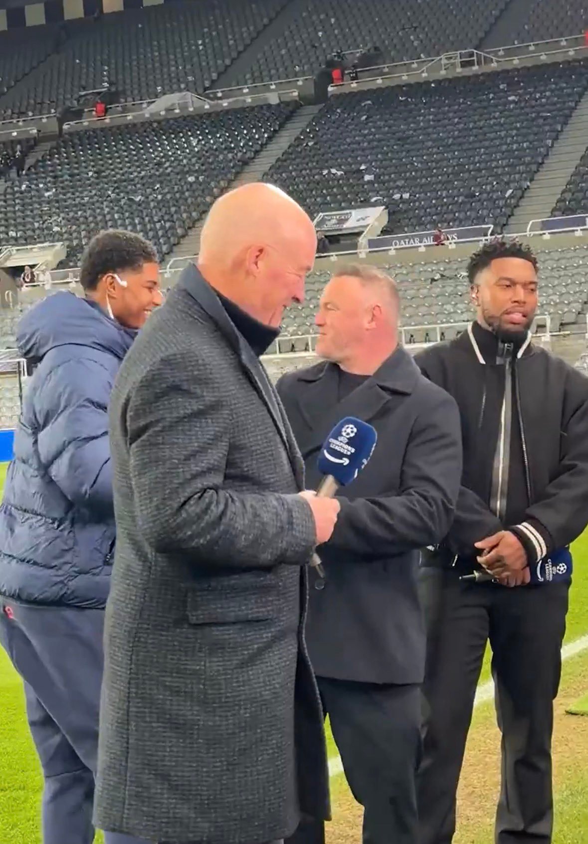 随巴萨来到圣詹姆斯公园球场客战纽卡斯尔的拉什福德在赛前上前和鲁尼打招呼。