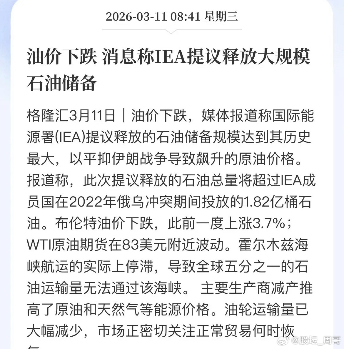 就看这个消息是否真的落地了,真能释放大规模的石油储备,来平衡市场上的短期缺口,平抑价格了。