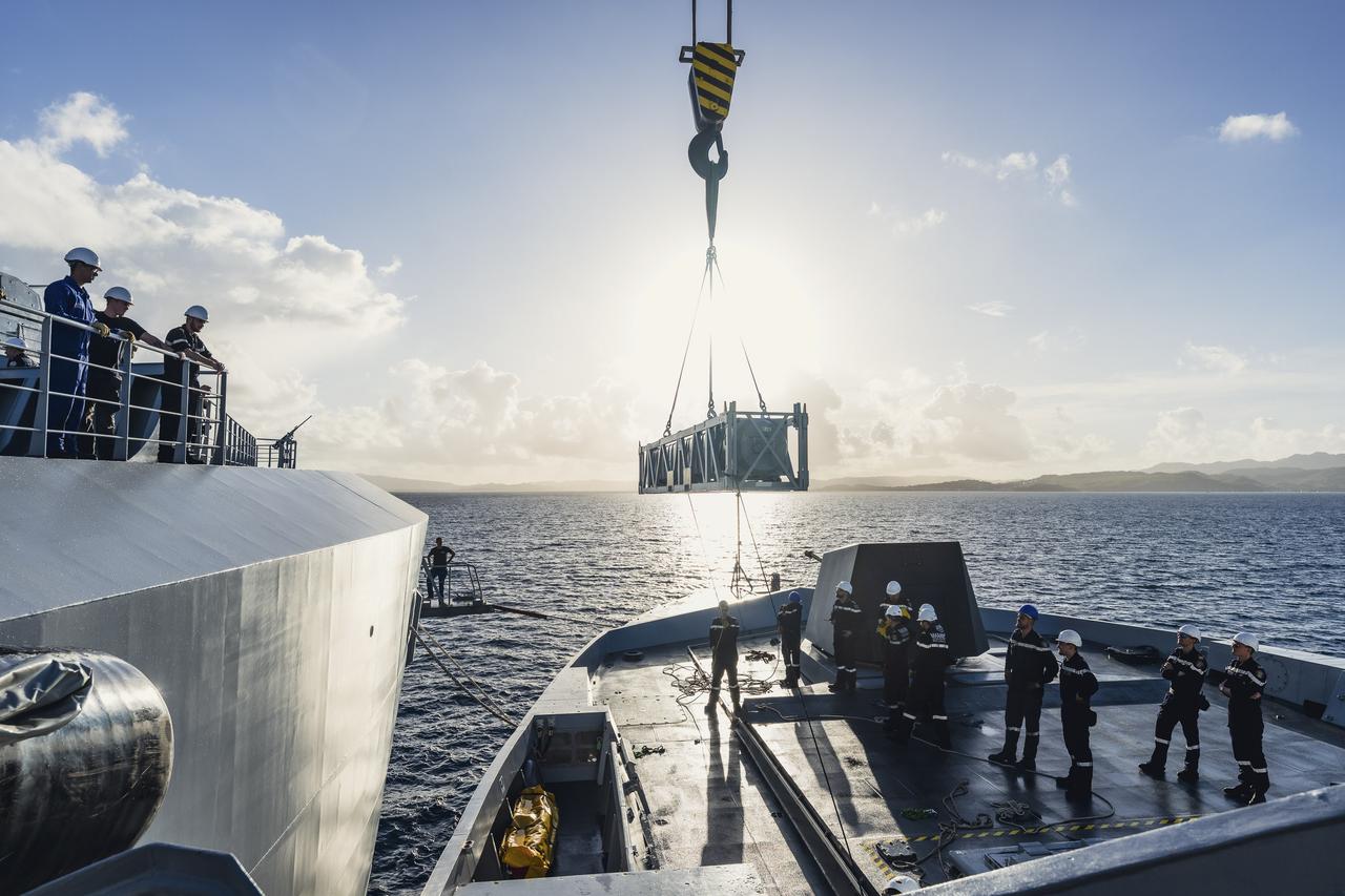 法国海军Admiral Ronarc'h(海军上将罗纳克) 和LSS Jacques Stosskopf级护卫舰进行长期部署,在法兰西堡附近进行了一次复杂的海上自主补给。目标:验证LSS用ASTER补充外国直接支援的能力,增强持续的海上战力。