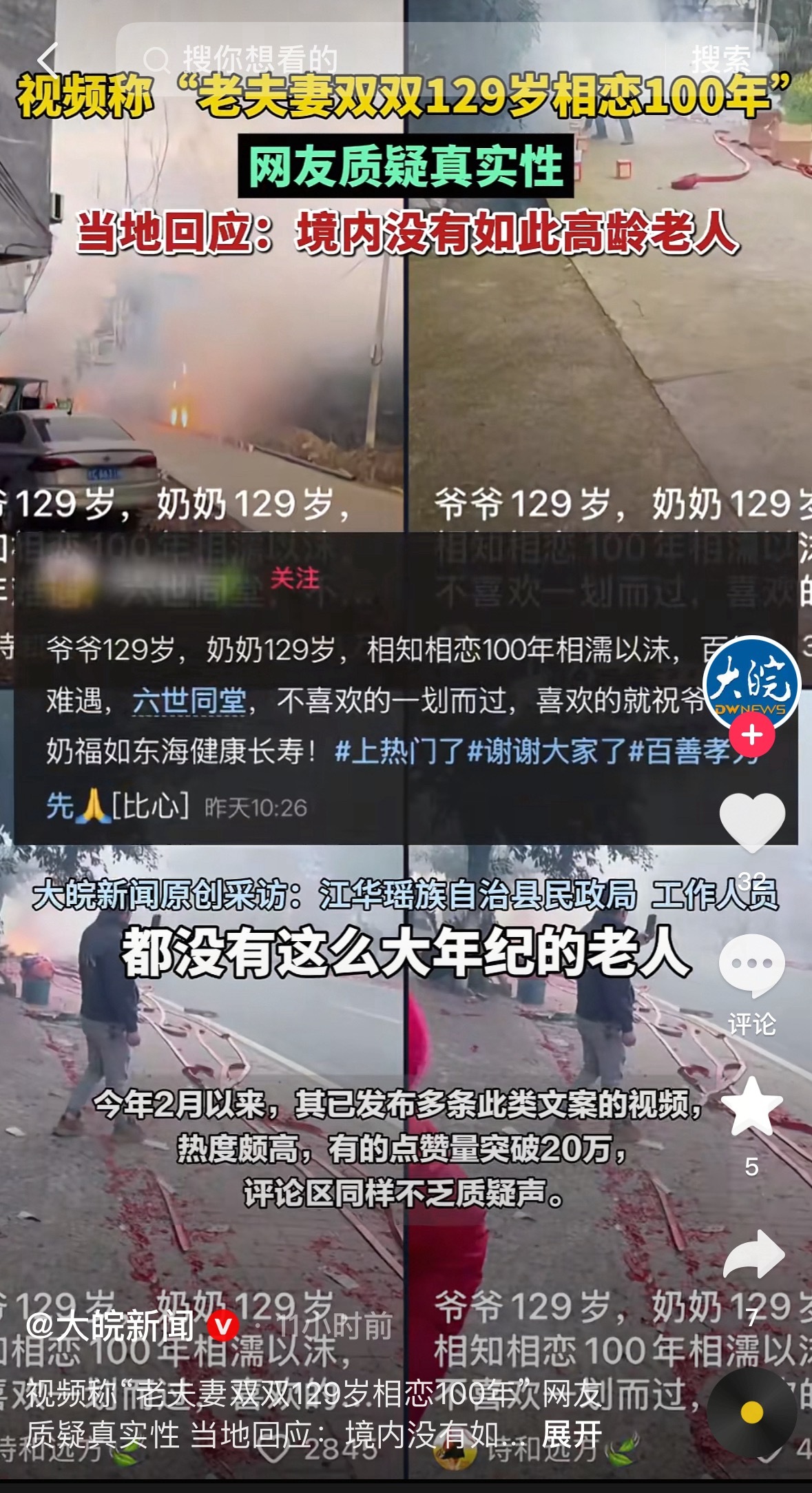 老夫妻双双129岁相恋100年引质疑这应该是因为以前的户籍制度不健全吧。再说他这爷爷奶奶129,太奶115?瞎编的吧。