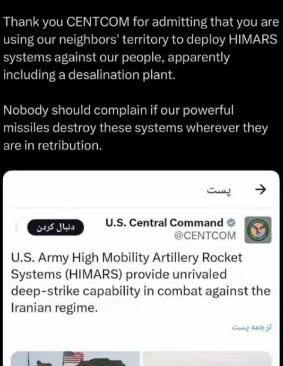 伊朗外长表示:感谢美国承认在伊朗的周边部署了海马斯,这样伊朗摧毁的时候,不会有人对这件事有意见的。 首先我们要清楚,要说现在伊朗最大的底气是什么,那么这个问题大概率是显而易见的,伊朗现在最大的底气大概率就是他自己的导弹。 这不,美国这边刚承认自己把海马斯部署在了伊朗周边,伊朗就直言不讳的表示,自己会用强大的导弹将其摧毁,很显然,伊朗这次很有可能不是说说那么简单,如果这场战争真的一直持续下去,那么美国在中东的部署很有可能全部都变成泡影。 不过按照特朗普的说法,现在的美国大概率已经有了撤退的打算,就看美国要什么时候撤退了,只不过美国撤退后,以色列会遭遇什么大概率就不言而喻了,他很有可能要为自己的所作所为付出代价。