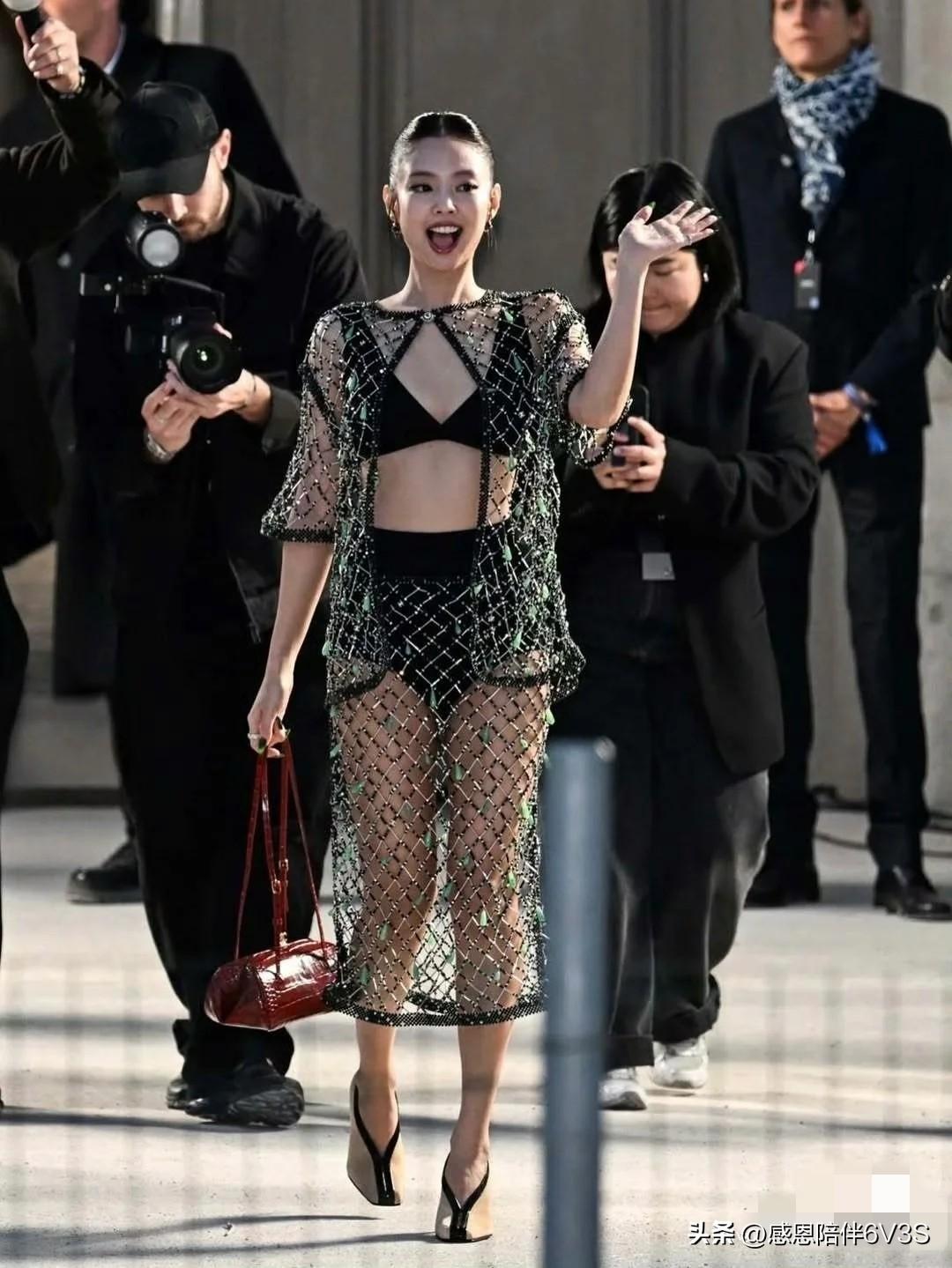 我勒个豆,Jennie这次真的鲨疯了!大光明造型如配上墨镜,姐就是秀场最严厉的母亲哈哈~别人都白皮红唇精致得像娃娃,就她保留原生感,松弛又高级。说实话,她往那一坐就是艺术品,根本不用硬凹。你们觉得女明星看秀,是这种“天生拽姐”范儿圈粉,还是精致甜美风更耐看?#Jennie