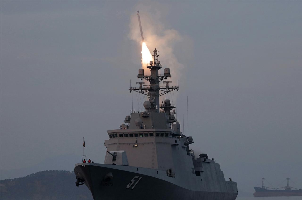 “崔贤”号驱逐舰一周内试射两款巡航导弹,“海对地巡航导弹”(图1)和“战略巡航导