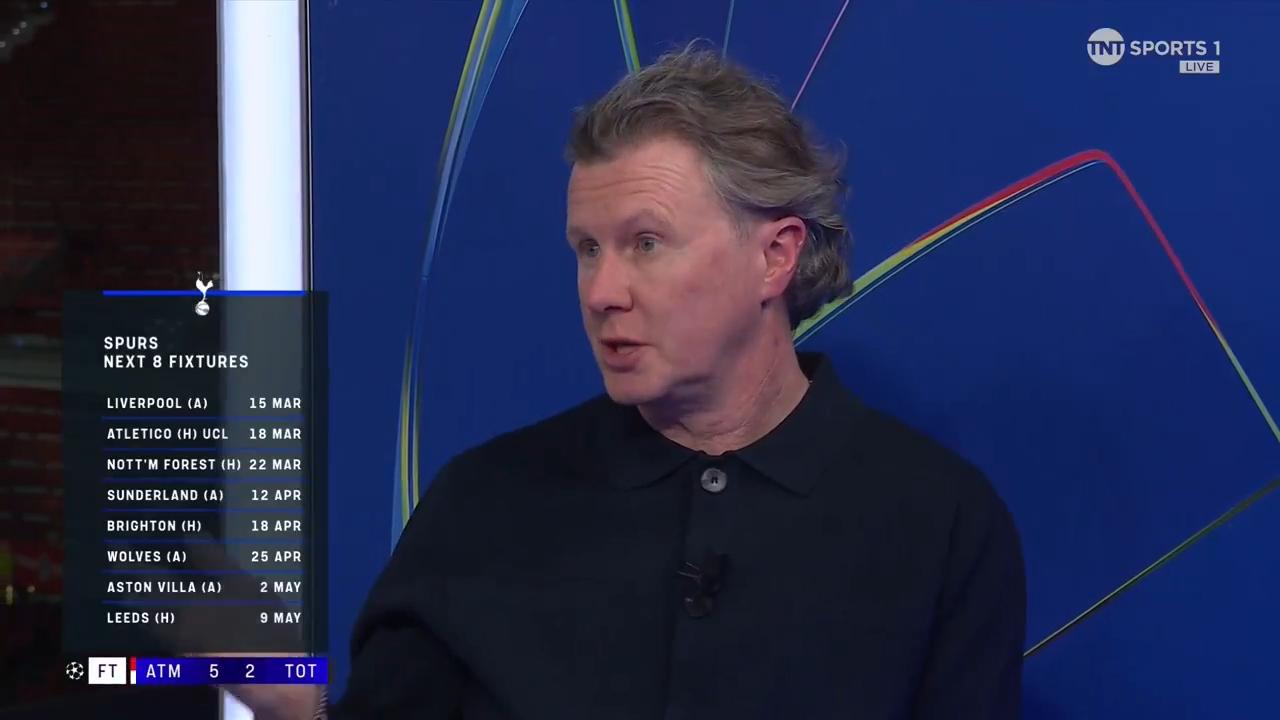 【图多尔你在干嘛】热刺客场2-5负于马竞的赛后,TNT体育评论员、前利物浦中场史蒂夫·麦克马纳曼抨击了图多尔的排兵布阵! “他(图多尔)被请来就是为了立刻扭转局面、立刻做出反应。问题不只是今晚的表现,还有所有场外的因素。关于门将人选的那些无意义的旁枝末节、他的排兵布阵、他的战术安排。” “半场时他又换回了索兰克,而你本以为索兰克、康纳·加拉格尔、哈维·西蒙斯、帕利尼亚这些人本就该首发,他们才是今晚的理想人选。他做出的每一个决定,到了半场都被自己推翻了。这真是一场荒诞的比赛!”热刺