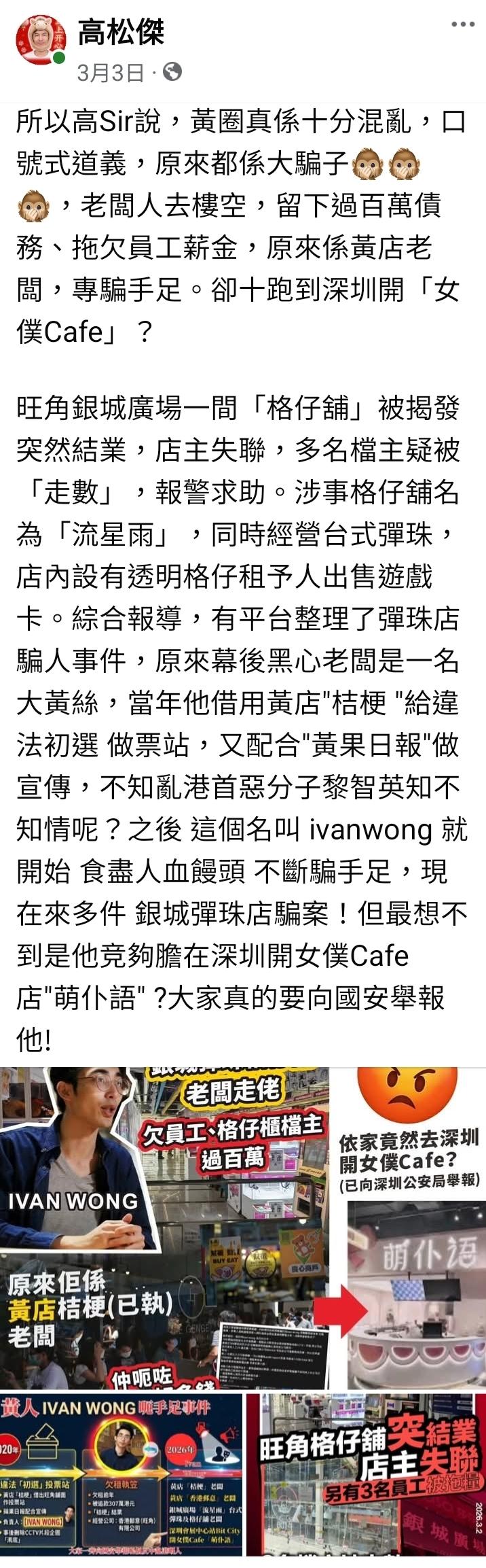 上星期讲过,涉骗手足和在深圳开仆cafe女的「流星雨」负责人,刚在落马洲离境时被