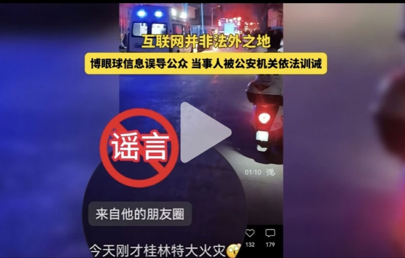 事件发生后,桂林市消防救援支队第一时间联合桂林市委网信办、公安机关展开核查处置,精准锁定信息发布者。面对确凿证据,马某对其编造传播虚假信息的违法事实供认不讳,并主动删除了相关虚假视频,积极采取措施消除不良社会影响。公安机关综合其违法情节与事后表现,依法对其作出训诫处理。