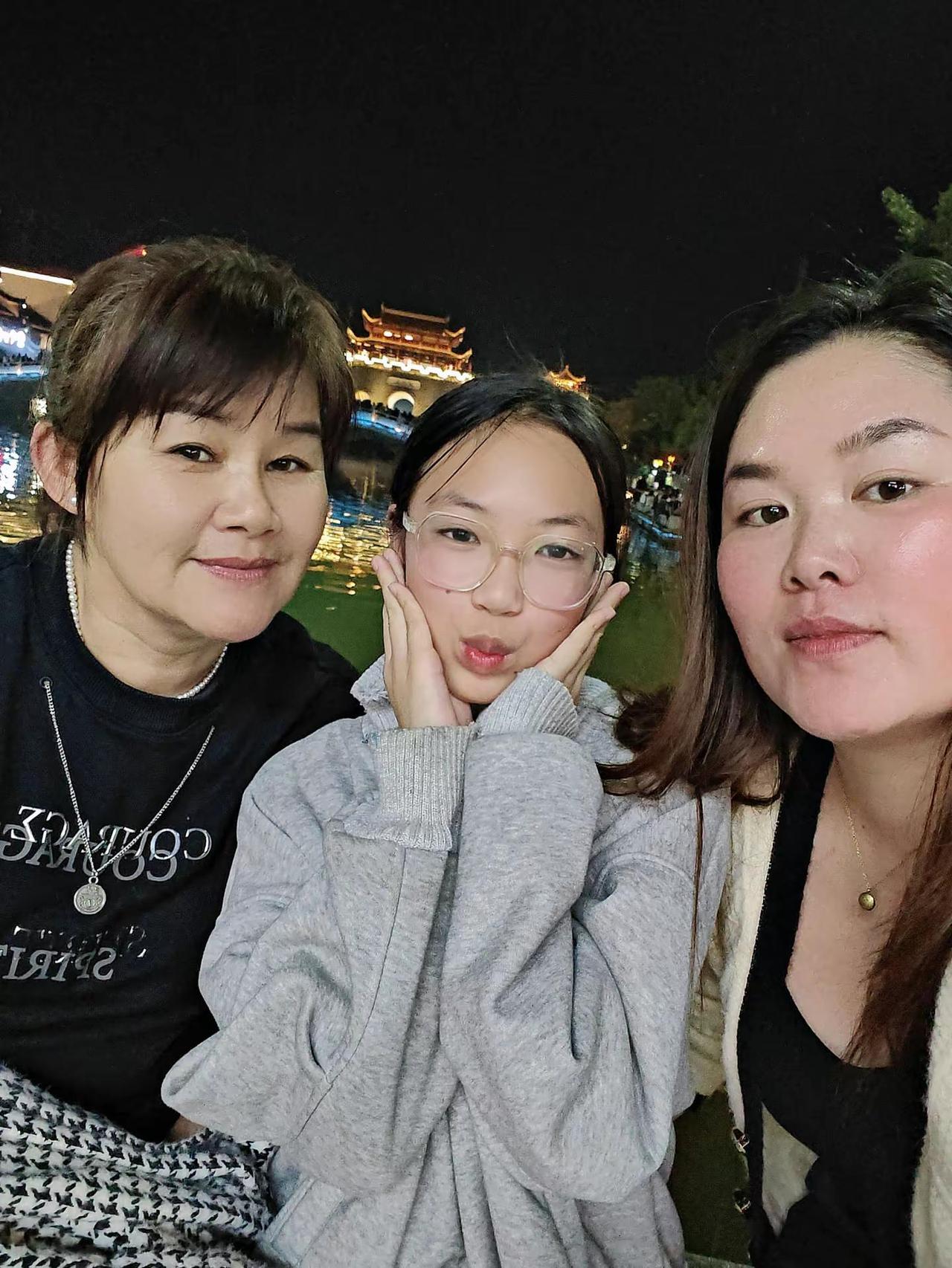 姐妹三人一样的美。哈哈!