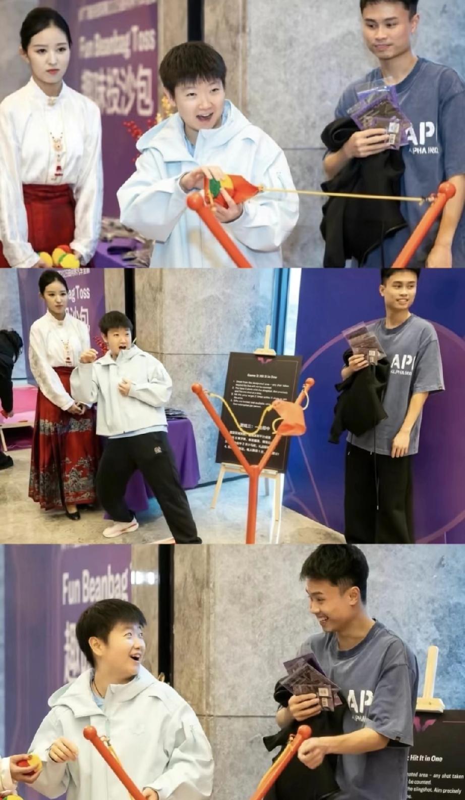 周启豪,大迪带着莎莎玩游戏,现场太欢乐了。 莎莎目不转睛看着大迪,莎莎玩游戏赢了,周启豪宠溺的看着莎莎感觉不可思议。 大迪的标志发型也看顺眼了。 沙宝丢的也越来越准了。 就是这模样感觉大迪和周启豪在带孩子过周末,哈哈,太可爱了。