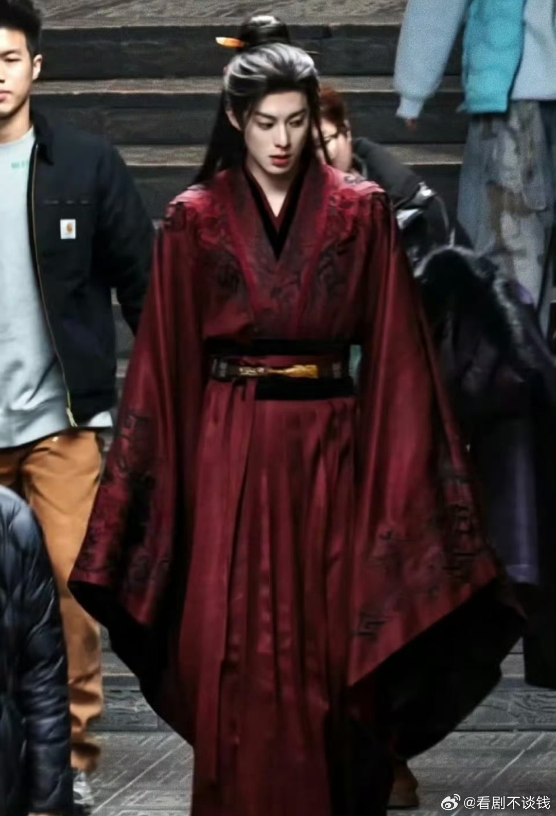 王鹤棣将门独后谢景行路透,红色的衣服也好帅气,潇洒不羁!