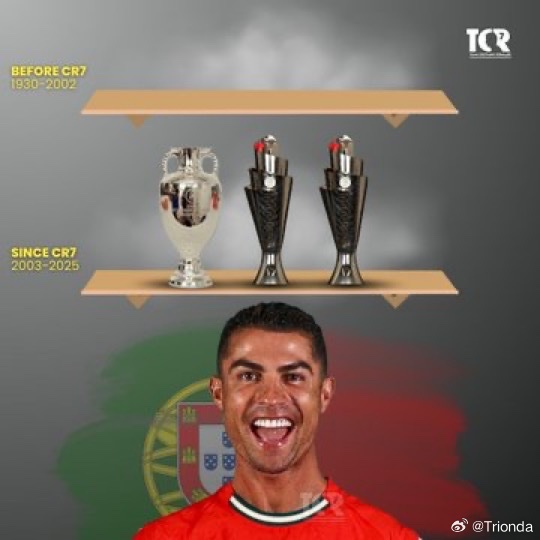 “克里斯蒂亚诺·罗纳尔多刚开始为葡萄牙国家队效力时,他们拿过多少奖杯?一个也没有。而现在,他带领球队赢得了三项国际赛事冠军。这太不可思议了。”梅西c罗