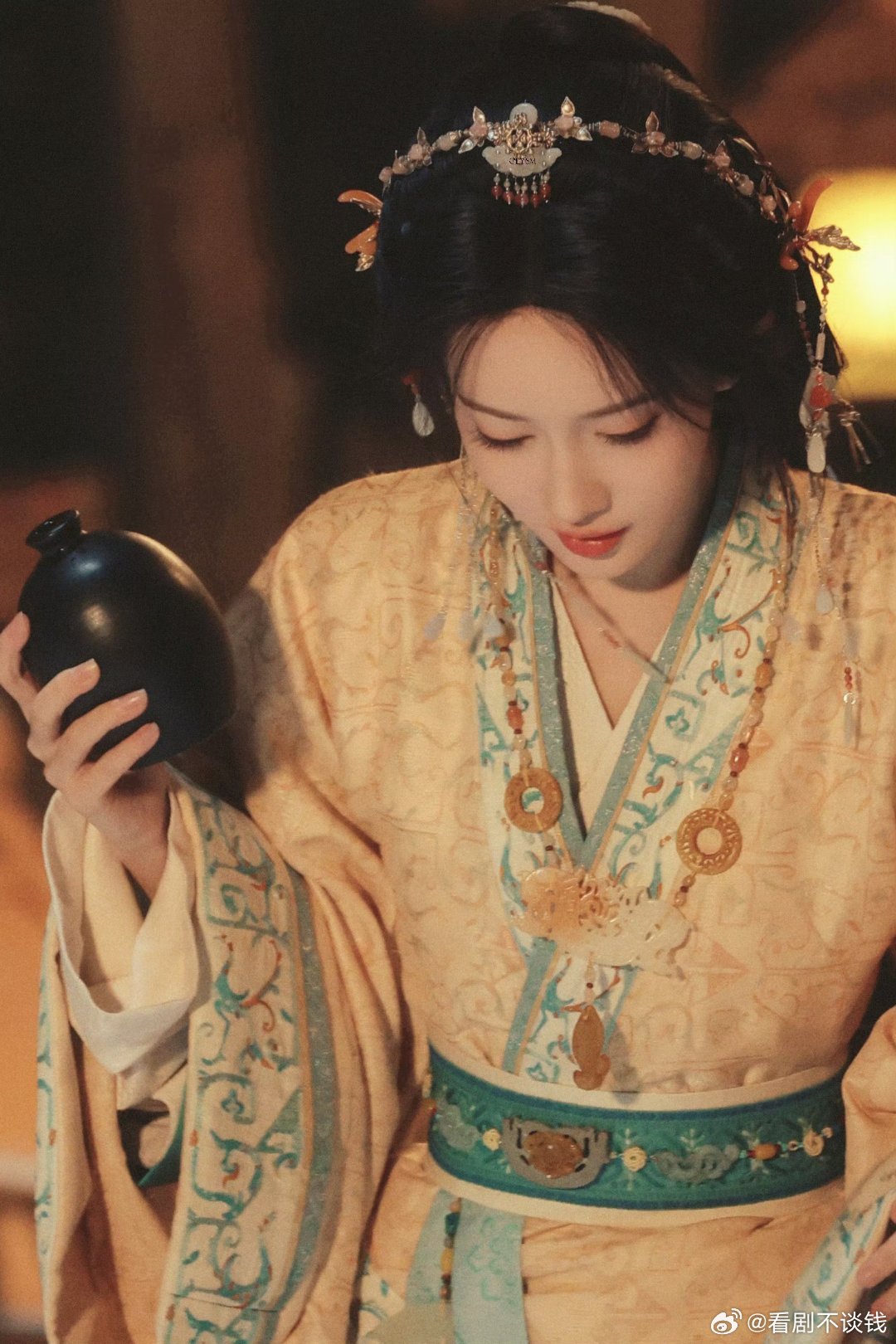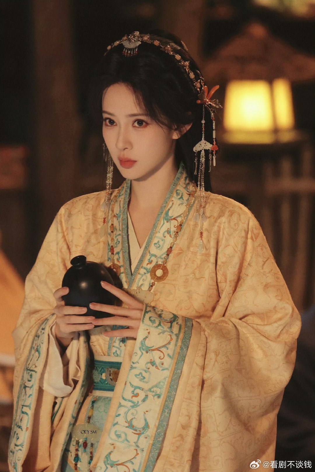 李一桐《金枝》陈雀儿蓝色造型路透, 完全是古偶孔雀塑来的!!