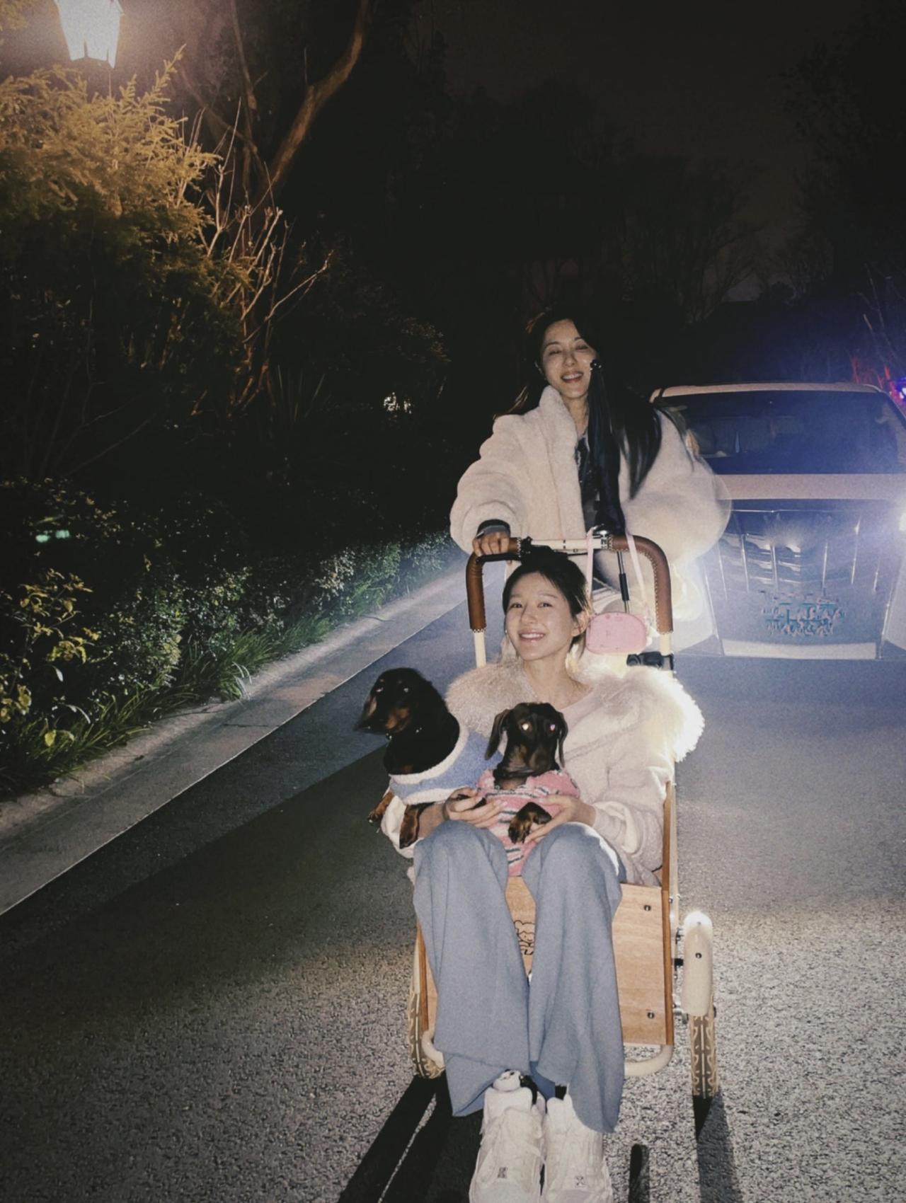 曾黎与赵露思的旧照,曾黎比赵露思大22岁,两人竟然能玩到一起去。 这是一张曾黎用小车推着赵露思的画面,感觉她好宠着赵露思啊!曾黎 赵露思