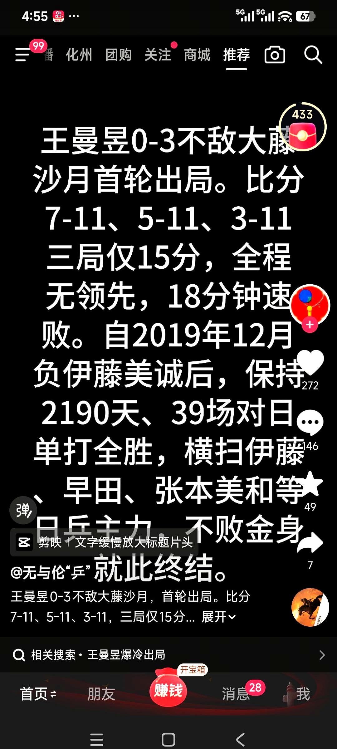 世界第二的王曼昱,0-3输给日本选手只用了18分钟。 两个月前的多哈赛,她还3-0横扫过大藤沙月。 这次对手改了长球发球、接发全用拧拉,全程压死她的反手节奏。 6年对日本选手的39连胜纪录,当场终结。 赛后她没接受采访,马琳现场指导也没能扳回局面。 没有官方实锤是伤病战略性放弃,更多是状态失准、长期不败的包袱成了束缚,还有对手真的做足了针对性功课。 竞技体育哪有什么常胜将军,你觉得她下一站能快速调整回来吗?