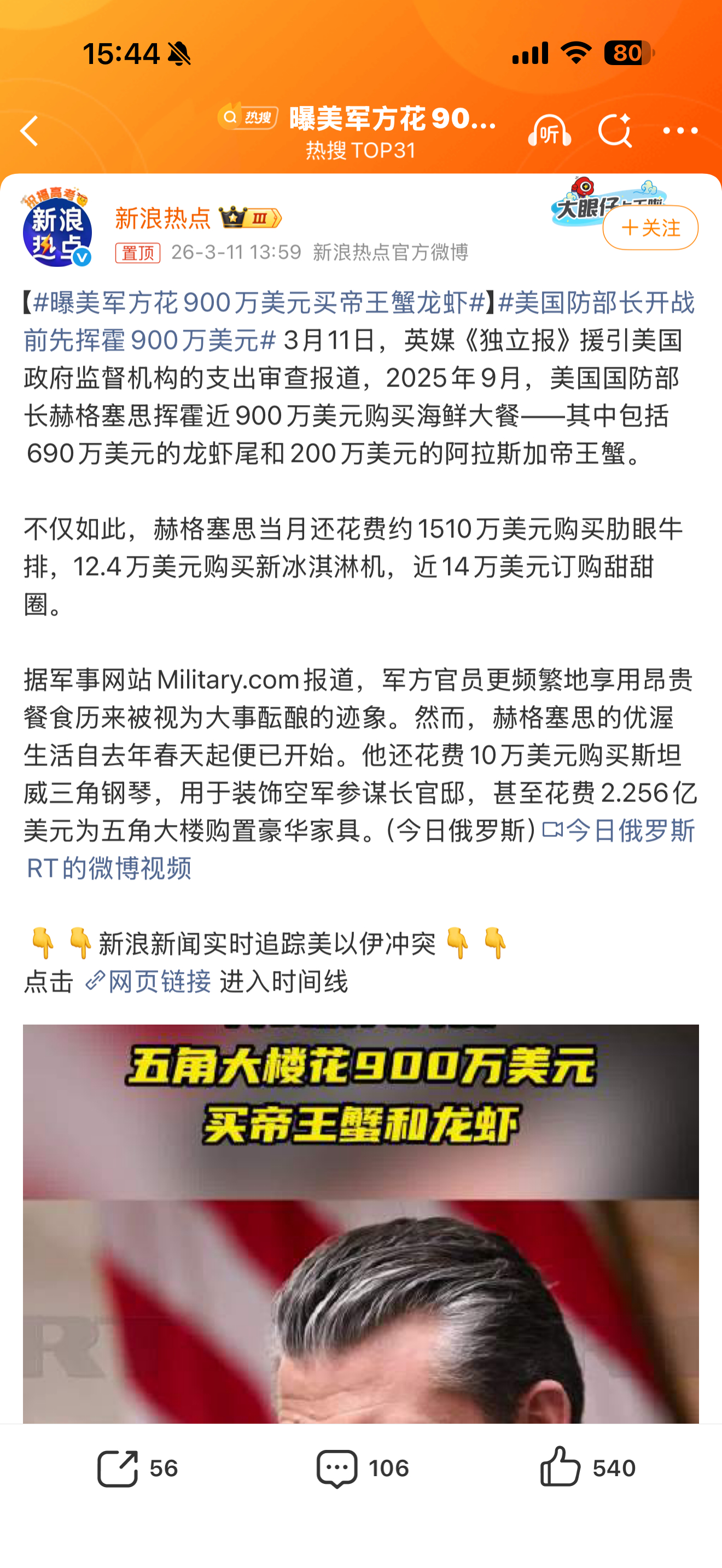 曝美军方花900万美元买帝王蟹龙虾