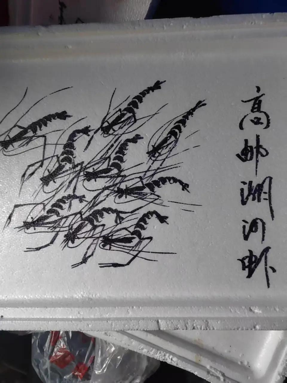 果然高手在民间!扬州菜市场卖虾大爷在泡沫板画虾走红,被赞画工精湛!当事人:没学过,纯爱好,20多分钟就能画完。 有人夸他画得活灵活现,是隐藏在市井的高手; 也有人把眼睛眯成缝,凑近屏幕看半天,最后扔下一句话:“假的吧?肯定是贴纸印上去的。” 这争议闹得,连摊子所在地的社区都惊动了,专门跑过去看了一眼。 工作人员回来就一句话:确实有这个摊,那泡沫板上的虾,是画的,旧了他还换新的 。 画虾的大爷姓梁,六十多岁,在扬州方圈门农贸市场外围卖虾。 听说别人怀疑他的虾是贴纸,梁大爷也不生气,哈哈一笑:“我就是卖虾的,没事在泡沫箱子上画个广告牌,二十分钟、半个小时就画出来了。” 梁大爷说自己没专门学过画画,就是好这口。 年轻时候干过玻璃绘画,有点老底子。 平时也喜欢临摹名家作品,有点基础。 他甚至还透露了一个小秘密:在泡沫箱上画,比在纸上画还容易些。“以前我也画过螃蟹。”他举着那块脏兮兮的泡沫板说 。 那块板就是菜市场最常见的包装泡沫箱,掰下来的盖子,边角坑坑洼洼,沾着洗不掉的灰。但上面的虾,须是须,节是节,还真有点在水里扑腾的意思。 然而最打动我的不是那画有多像,而是老爷子那句“二十分钟就画出来了”。 这哪是什么艺术创作,这就是一个卖虾老头,守着摊子无聊,顺手给自个儿找点乐子。别人卖虾吆喝,他卖虾画画,还画自个儿卖的东西。 有些人总觉着,高手得在画院里,作品得裱在框里。 其实这菜市场里,拿木棍在沙土地上划拉的老头,拿粉笔在水泥地上写字的小孩,还有这位在脏兮兮泡沫箱上画虾的梁大爷,他们心里那份“喜欢”,才是最干净的。