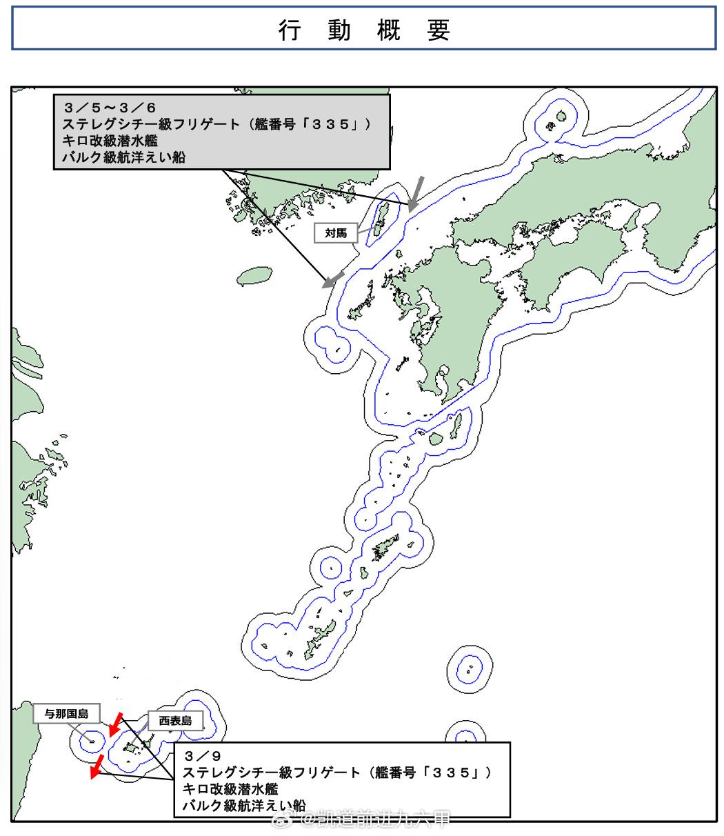 俄罗斯海军的小编队从对马海峡一路南下,从与那国岛和西表岛之间穿过,进入台湾以东的西太平洋。其中这条基洛级潜艇似乎一直保持水面航行状态,粗略计算平均航渡速度7-8节,基洛级潜艇水面航渡速度约7节。上次我军基洛级潜艇赴俄参演,来回都没有任何日韩消息通报,显然是以潜航状态秘密通过了对马海峡。