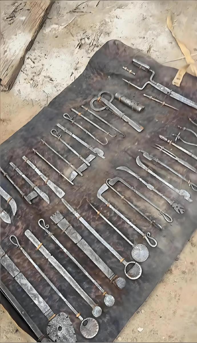 收拾老家老房子的时候,翻出这么一整套“宝贝”,我直接看懵了!这到底是什么啊? 铺在地上整整一摊,全是锈迹斑斑的金属工具, 有带钩子的、带刀片的、还有带勺子头的,看起来像古代的“手术工具”,又像某种老手艺的家伙事儿, 我问了家里老人,他们也说不上来具体是干嘛用的,只知道是祖辈传下来的。 有没有懂行的朋友?来科普一下这到底是什么工具,是用来干嘛的啊?评论区涨涨见识! 老物件 民间老物件 不懂就问 老房子的回忆
