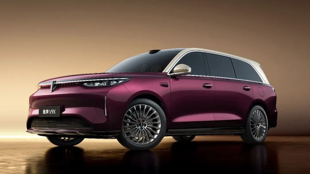 车市热门 魏牌旗下大型SUV——魏牌V9X正式亮相。作为归元S平台的首款车型,搭载2.0T插混系统,长宽高分别为5299/2025/1825mm,轴距为3150mm,工信部纯电续航里程分为240km和363km。外观方面,新车采用全新的设计风格,封闭式前格栅搭配星环式贯穿灯带以及与灯带相连接的大灯组,让车头气场更强。灯带将支持流水迎宾效果,配合可发光品牌LOGO,提升辨识度。车头顶部配备激光雷达,预计将搭载高阶驾驶辅助系统。车身侧面采用了双腰线的设计,更显修长。轮拱上方凸起的线条加强了运动化气息。首曝车型采用双拼色车身以及传统样式的车门把手,并配备密辐式轮圈造型。车尾采用贯穿式尾灯组,两侧为椭圆形设计并集成智驾小蓝灯。内饰采用当下新能源主流的设计风格,环抱式座舱内,窄条式全液晶仪表搭配大尺寸悬浮式中控屏,与同尺寸的副驾娱乐屏组成的一体式连屏。采用2+2+2的6座布局,前排提供手机无线充电,并在二排扶手处加入手机无线充电功能,第二排座椅提供躺椅模式,搭配二排可翻折娱乐屏,大大提升后排乘客的舒适度。动力方面,新车或将基于800V混联架构,搭载2.0T发动机组成的插混系统,发动机最大功率175千瓦,最高时速210km/h,满电状态0-100km/h加速时间4.4秒,馈电状态0-100km/h加速时间4.7秒。配备混动6C电池,实现纯电续航超过400km,充电5分钟续航200km,目前已申报的纯电续航为240km和363km。