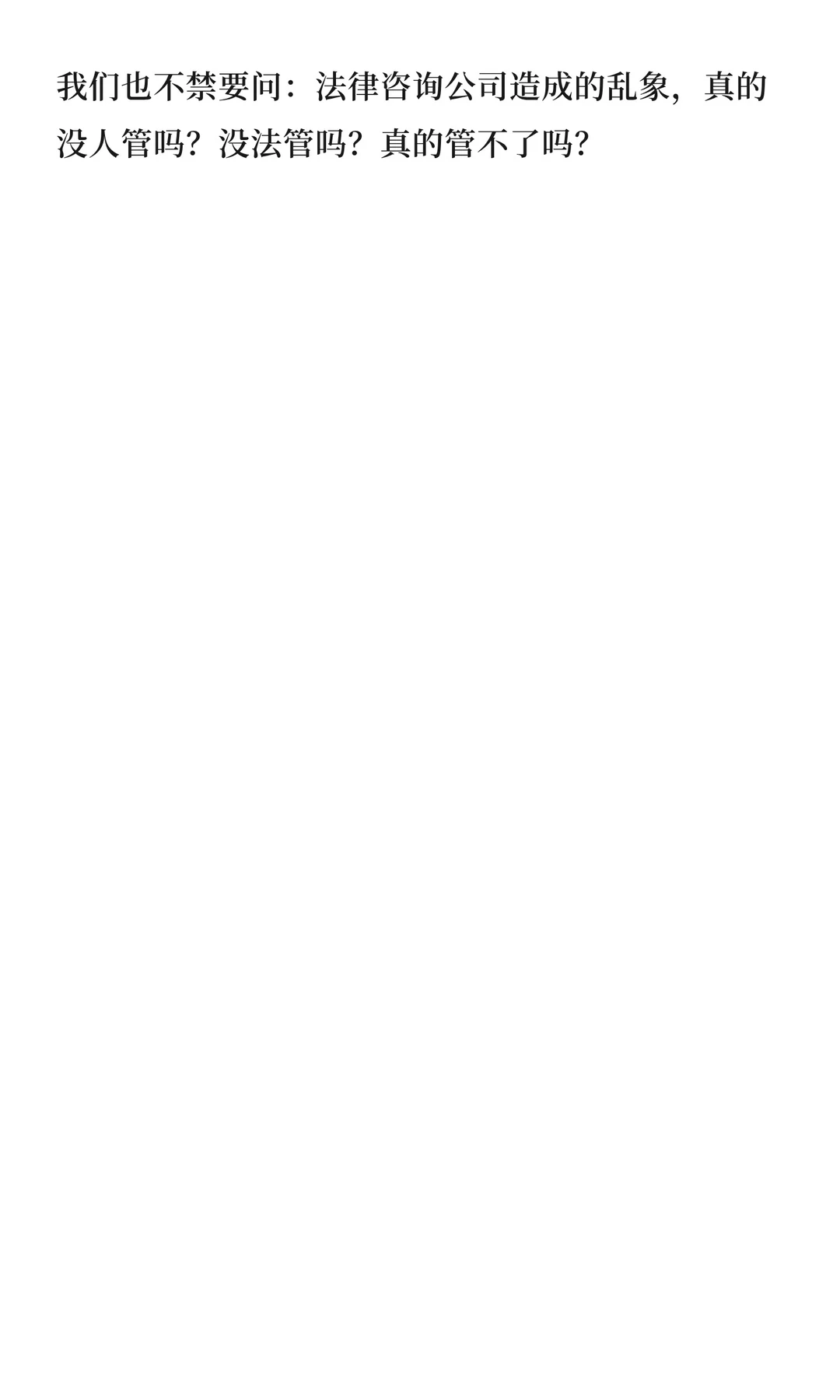 我们也不禁要问:法律咨询公司造成的乱象,真的没人管吗?没法管吗?真的管不了吗?