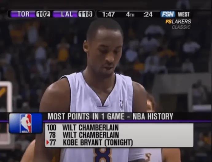 有图有真相,科比当年也是刷到81分! 这时湖人领先16分,还剩下1分47秒,科比拿下77分,还在场上去罚球刷分。 其实谁都会刷分,乔丹要是当年多刷点,也不至于最高69分。 阿德巴约本场83分,可以直接进名人堂,在热火队史也有重要地位了! 我希望未来大家都刷分,让我们见识一下90分吧。[大金牙]