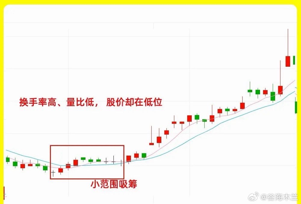 注意了!这是一个主力都害怕的技术指标,很有人所认为,很多指标都有滞后性,如果你也是这么认为的,那不妨认识一下指标共振,相互互补,今天我就把量比+换手率的几种类型,如果你对这指标还不熟悉,那这期内容就一定要认真看完一、低换手 + 低量比换手率小于3,量比小于,就属于低换手和低量比,说明没有资金在参与,如果是出现低位,说明股价一直在低位横盘,市场关注度很低二、低换手 + 高量比换手率小于3,量比大于3,说明冷门股,突然出现放量,当时整个市场的筹码并没有多少换手,这种走势出现低位,那往往是主力偷偷建仓试盘。在高位出现,那就要谨慎了三、中换手 + 低量比换手率在3%到8%左右,量比却很低,0.8左右,那此时如果是低位,那一般是主力在偷偷,慢慢换手,如果是上涨趋势的初期,主力筹码比较稳定,所以换手也不会太高四、中换手 + 高量比换手率在3到8之间,算是中换手率,量比在3左右,说明此时股价处于一个上涨趋势当中,如果是中小盘的话,那主升已经启动,算是健康的上涨,换手率比较稳定好了!以上就是我们常见的四种换手率和量比组合的形态,下方我准备了案例图,建议认真看完。如果还有什么问题,可以留言告诉我。希望对大家有启发,也是最为基础的内容,一定吃透。我们下期内容再见