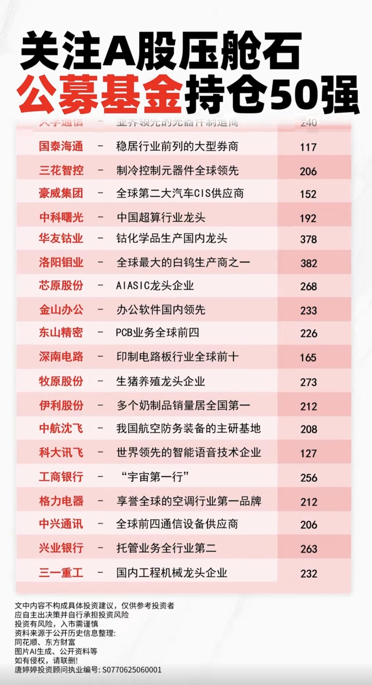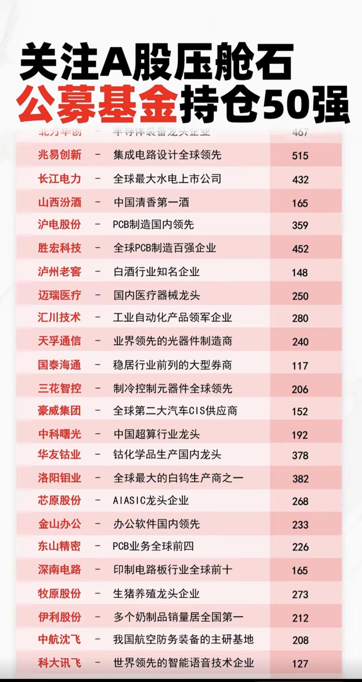 A股压舱石:公募基金持仓50强! 1.科技龙头股 2.高股息、高回报、高分红 3.行业绝对龙头股 4.资本集中营 附50强名单:
