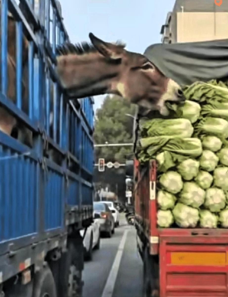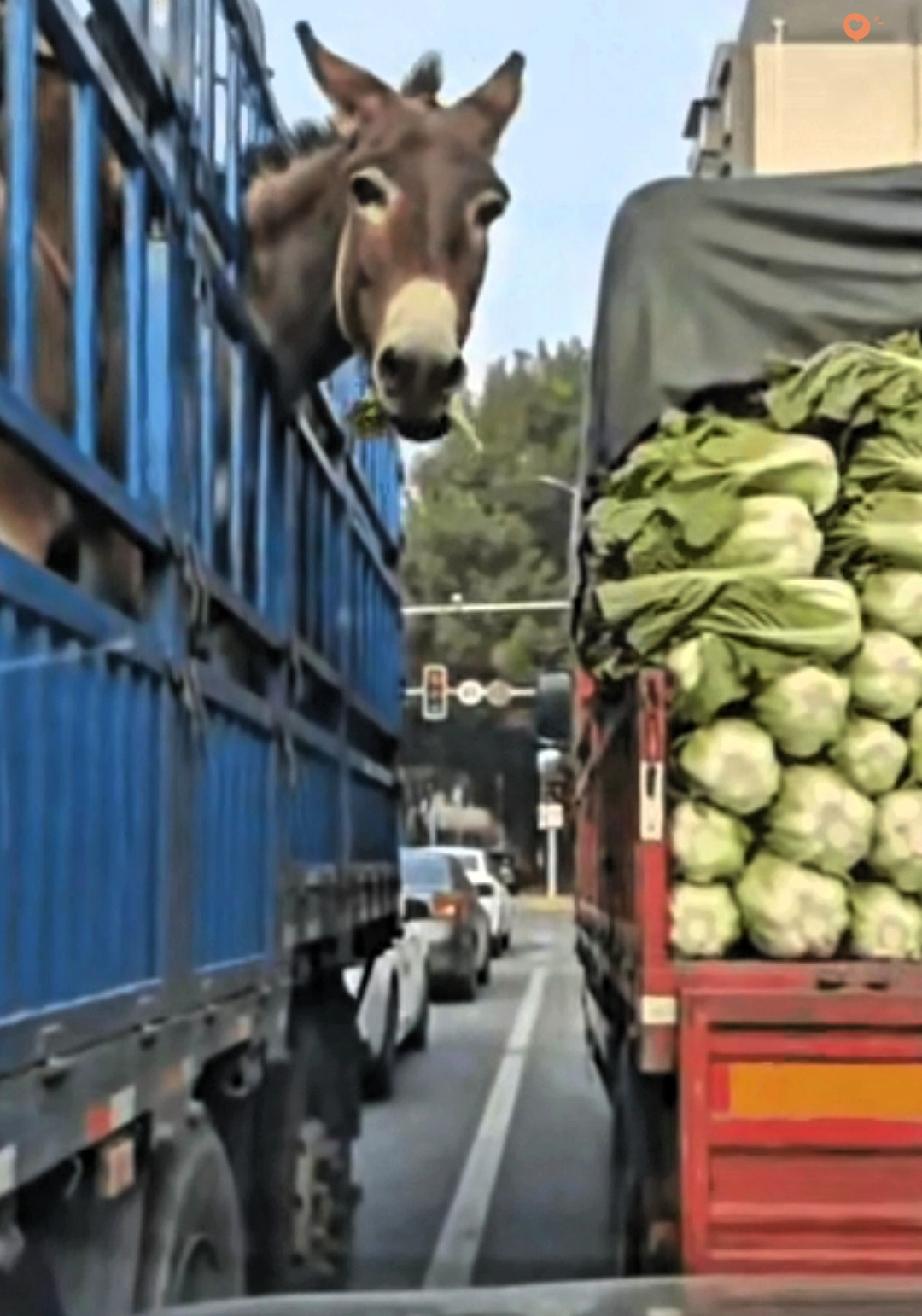 真的要被这头犟驴笑不活了! 红绿灯路口两辆车排队,一辆车上的驴居然偷偷啃起隔壁车的大白菜,后车按喇叭提醒,这驴的反应直接让全网笑喷。 换别的动物估计早缩回去了,这驴倒好,啃得更起劲了,那架势仿佛在说“我都快上餐桌了,吃两颗白菜怎么了”。 都说犟驴犟驴,今天算是见识到了,偷吃都偷得理直气壮,这股子“摆烂式硬气”简直绝了。 其实这画面看着搞笑,细想还挺戳人。很多时候我们活得太拘谨,反倒不如一头驴活得通透,该吃就吃该乐就乐,哪管别人怎么看。 生活本就该多点这种没心没肺的快乐,少点瞻前顾后的纠结。 你见过哪些动物干出的搞笑蠢事,快来评论区分享一下吧!