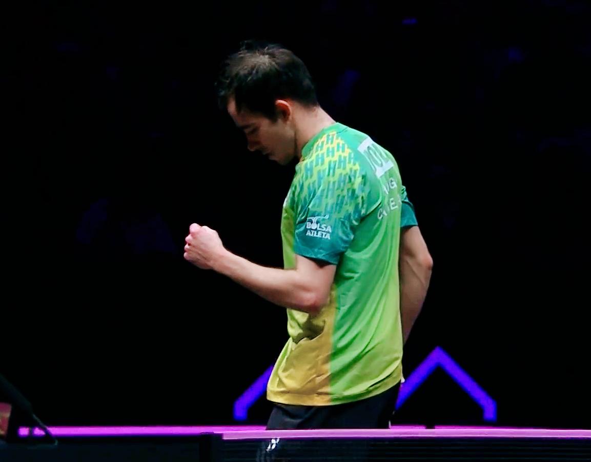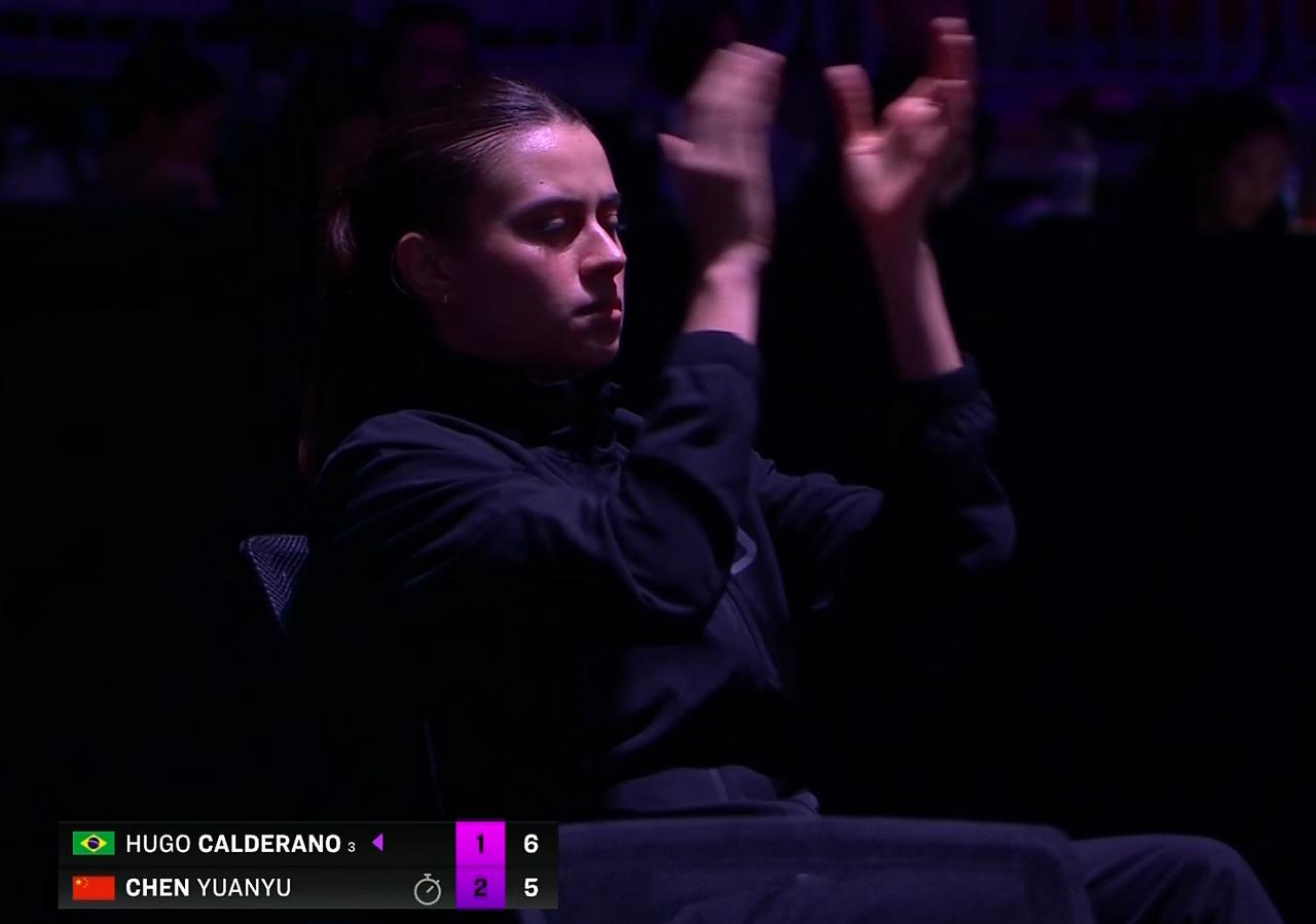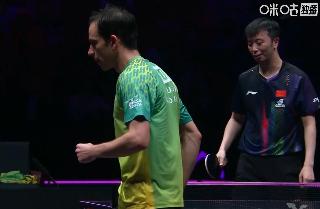 陈垣宇前面都挺好,第四局怎么突然断电了呢? 刘国正说:雨果第四局开始搏杀了,而且打出了手感,陈垣宇必须也放手一搏才行。 前三局 两人打的比较胶着, 但是陈垣宇发挥出色, 2:1领先。 第四局 雨果放手一搏 4:1领先。 雨果一放松 陈垣宇连赢4球, 5:4反超, 随后两人一路胶着, 8:8平之后, 雨果连赢3球, 11:8扳平。