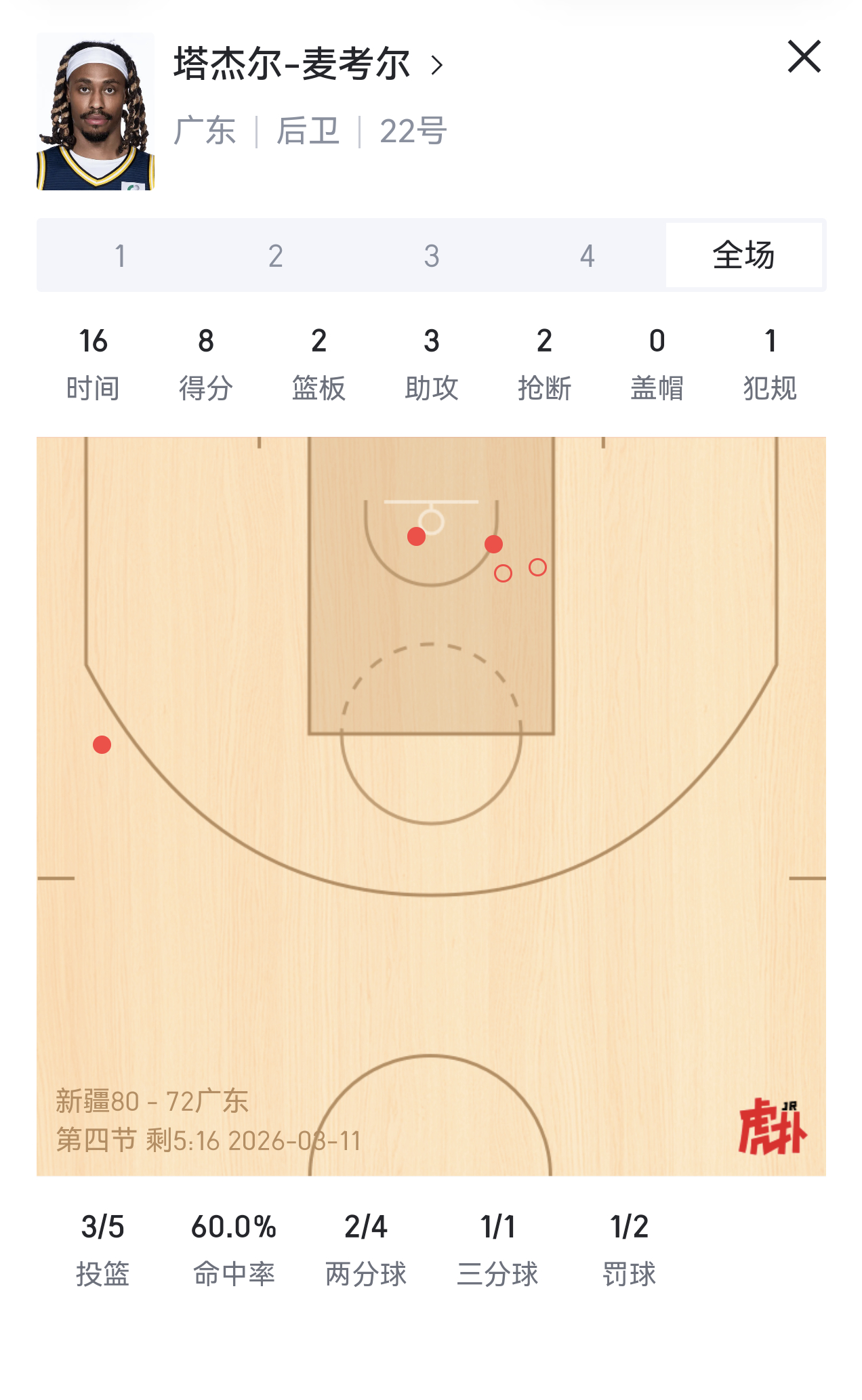 我觉得让麦考尔来打关键时间段的外援不是个很好的选择。新疆男篮vs广东男篮