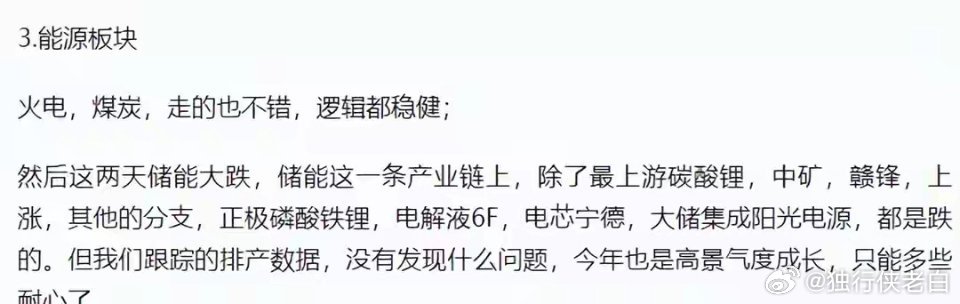 2026.3.12 A股策略:主线轮动清晰,耐心是核心心法核心思路:降低预期,不贪全抓。当前市场呈现科技与能源/消费的跷跷板格局,资金惯性明显,量化主导下的轮动速度较快。建议采用高景气赛道持有+跷跷板板块大跌时滚动做T的策略,静待情绪修复。一、 盘面复盘:熟悉的跷跷板1. 市场常态:今日走势与昨日预判高度一致,3000-4000家个股待涨,成交量未有效放大,主观资金意愿不足,整体仍由量化资金主导轮动。2. 板块虹吸:早盘算力(光模块、光子概念)冲高回落,随后受宁德时代业绩超预期(储能业务占比将升至5:5)驱动,资金涌入储能及新能源产业链(锂矿、电解液、逆变器等)。能源板块同步反弹,形成对科技股的资金虹吸,导致科技板块震荡回落。二、 板块节奏与策略1. 算力方向(核心主线)- 逻辑:海外算力围绕新技术活跃(液冷、电源/芯片架构、光互联),国产算力各环节均有增量逻辑。- 催化:下周将召开两场科技大会,分别对应海外与国产算力主题,届时将是重要的情绪触发点。- 操作:坚定持有高景气方向,利用分时波动做差价。2. 能源板块(新旧共振)- 定位:十万亿级战略性资产,全球主线。- 方向:旧能源关注火电弹性,新能源重点跟踪储能高景气链。- 心态:该板块适合长线布局,需有足够耐心,切忌追涨杀跌。3. 潜伏方向- 商业航天:当前横盘震荡,具备逢低潜伏价值。- 半导体/存储/机器人:虽暂处震荡或下跌阶段,但核心逻辑未变,只因流动性不足而蛰伏。静待资金回流,届时有望迎来修复行情。总结:当前市场“弱水三千,只取一瓢”。认准主线,保持节奏,比焦虑更重要的是耐心。