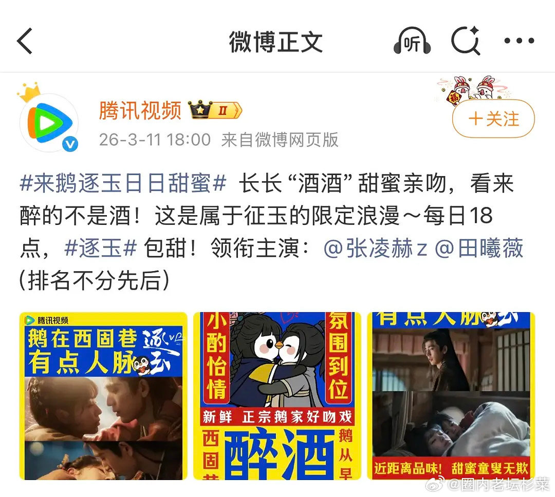 腾讯视频力挺逐玉:无添加,不兑水,头真铁啊