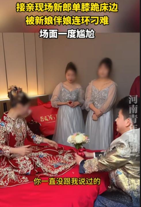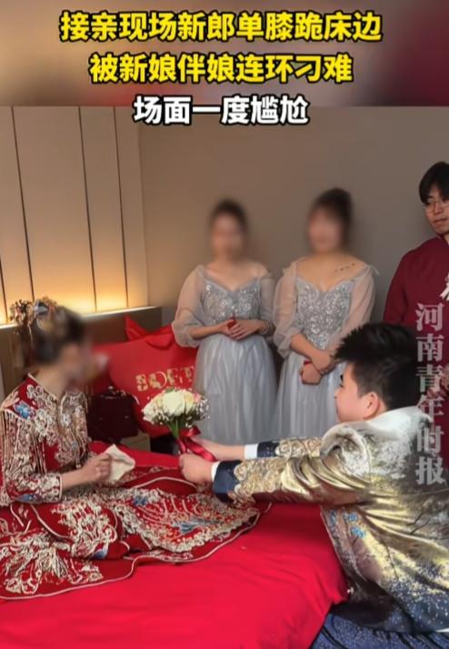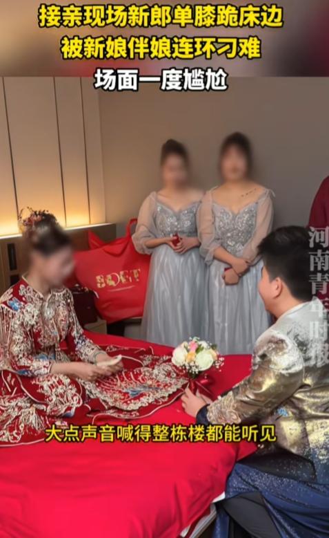 真正聪明的女人,是不会联合外人去为难自己老公。 山东,一接亲现场新郎单膝跪床边,被新娘伴娘连环刁难,场面一度很尴尬。 “我不听这个。”新娘环抱着手臂,扭头,一脸不悦。 “你要听什么?” “那我听我想听的你,你一直没跟我说过的。”虽然新娘是跟新郎说话,但是头一直扭过去,不看新郎。 “老婆我爱你。”新郎诚意满满,边说边递上捧花,希望新娘能跟自己走。 “哎呦,这个,不是刚说过了。”新娘不开心了,很嫌弃的感觉。 这时候闺蜜帮腔“大点声音,喊得整栋楼都能听见。”“大点声。”“像喊号一样。” “老婆我爱你。”很明显,这次新郎嗓门大了一点,但是新娘依旧不满意,还是不看新郎。 这哪里是接亲,这分明是当众羞辱。得亏新郎脾气好,碰上暴脾气的,直接摔花走人了。 接亲仪式的刁难,图的是热闹、是仪式感,不是真的要让男人下不来台。像这样新娘联合闺蜜一起“拿捏”老公,看似赢了场面,实则输了人心,也丢了自己的格局。 婚姻的底气,从来不是靠打压老公得来的。一个女人最大的体面,应该是护着自己的男人。在外人面前给足他尊重,他才会在日子里加倍疼你。 夫妻本是一体,一荣俱荣,一损俱损。 外人看热闹不嫌事大,只有枕边人才该心疼他的不易。 这种婚还没结就开始的内耗,新郎此刻的尴尬和难堪,都会变成日后心里的一根刺。以后的日子,恐怕很难过顺。