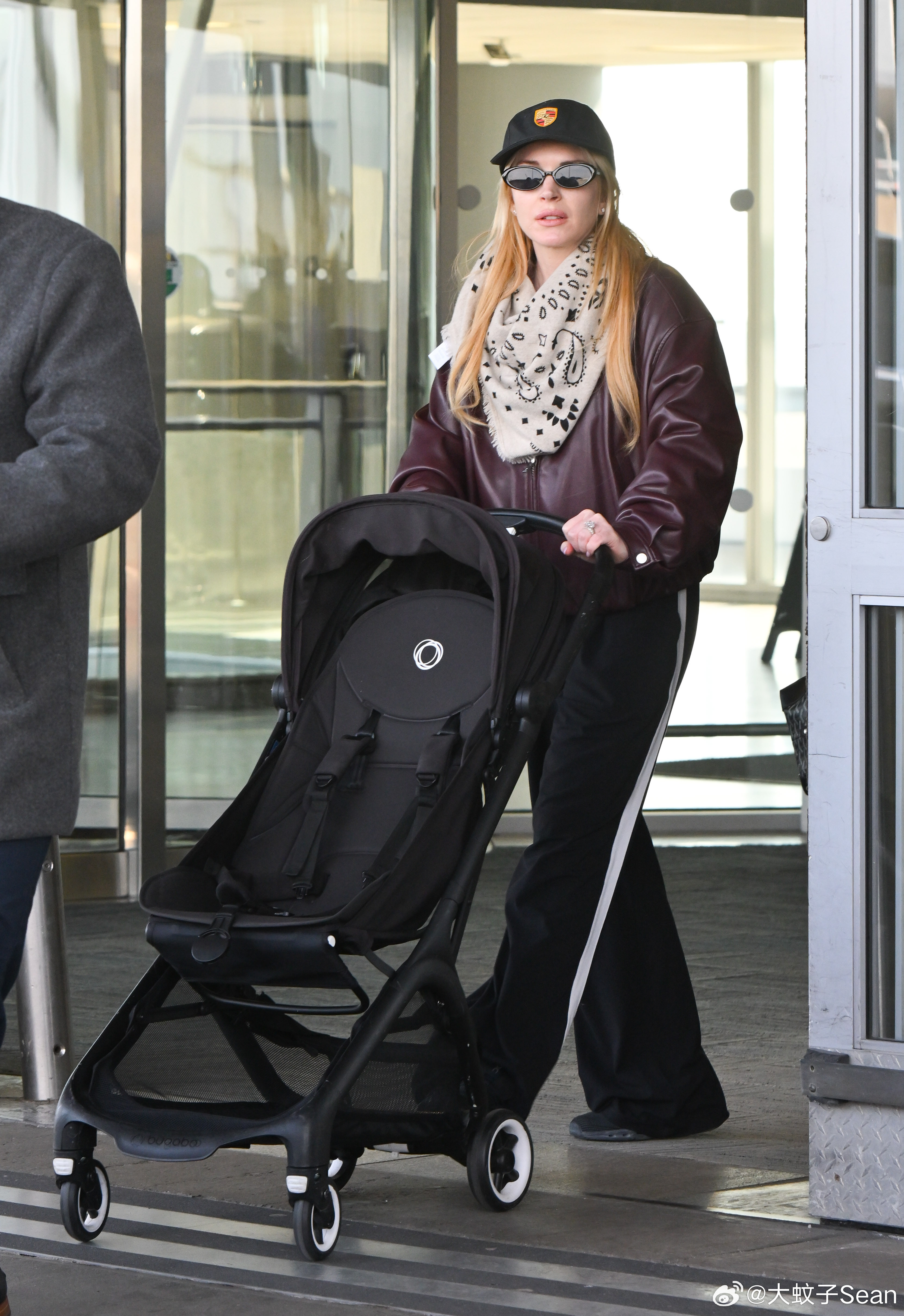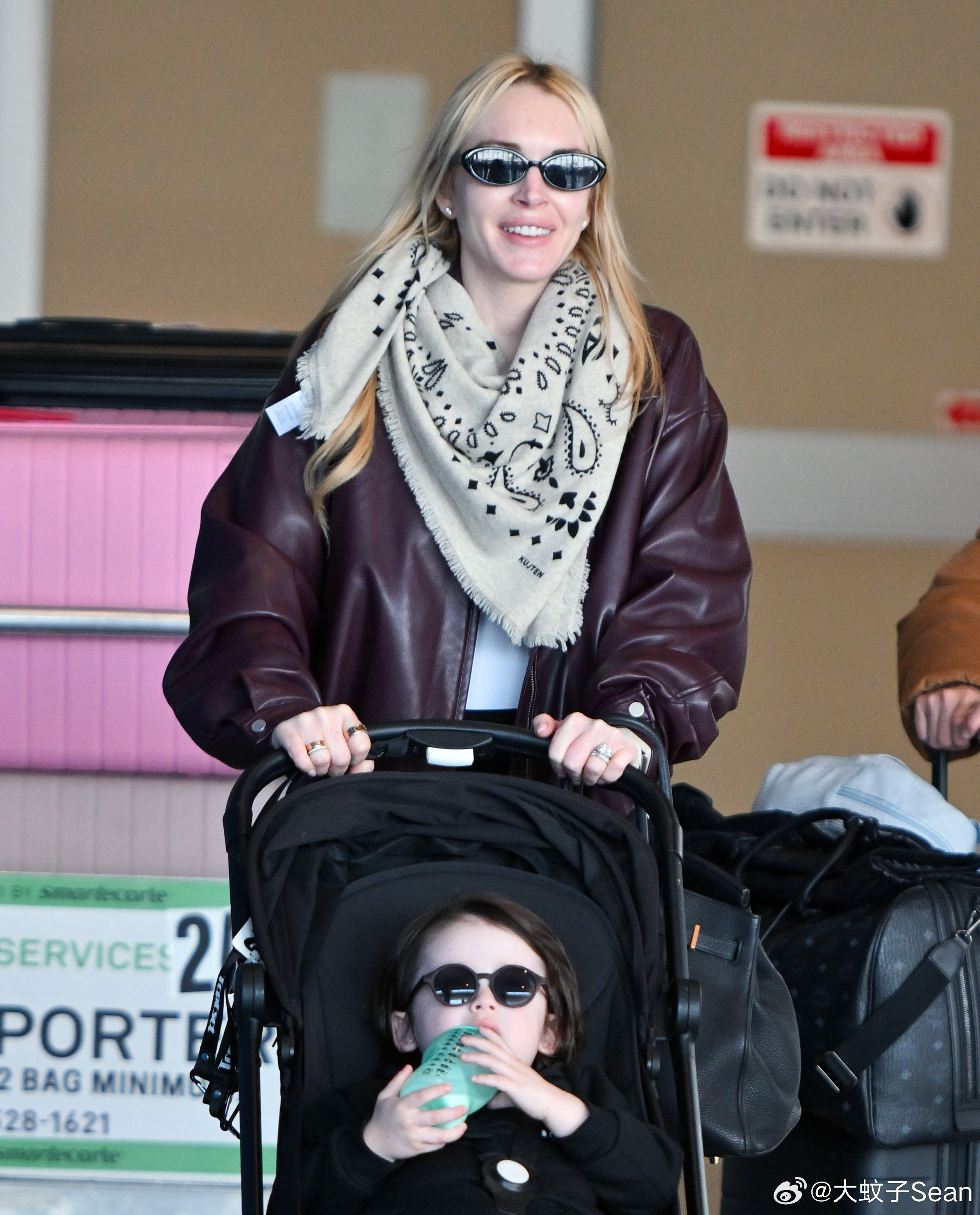 Lindsay Lohan林赛罗韩和老公Bader Shammas带着儿子从迪拜飞抵纽约,即将开始为新剧《Count My Lies》进行开工